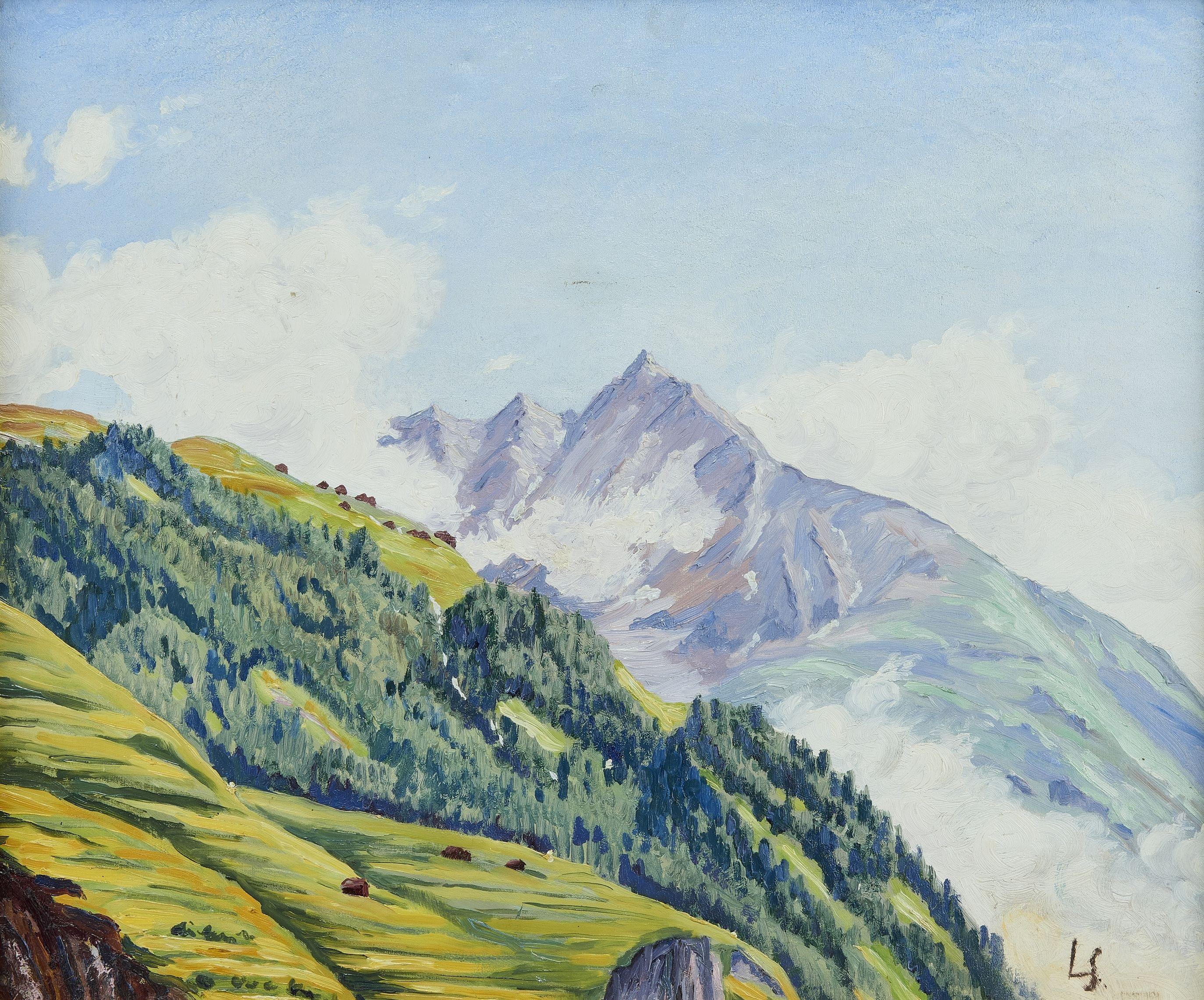 Paysage, huile sur toile, monogrammée, 54x65 cm