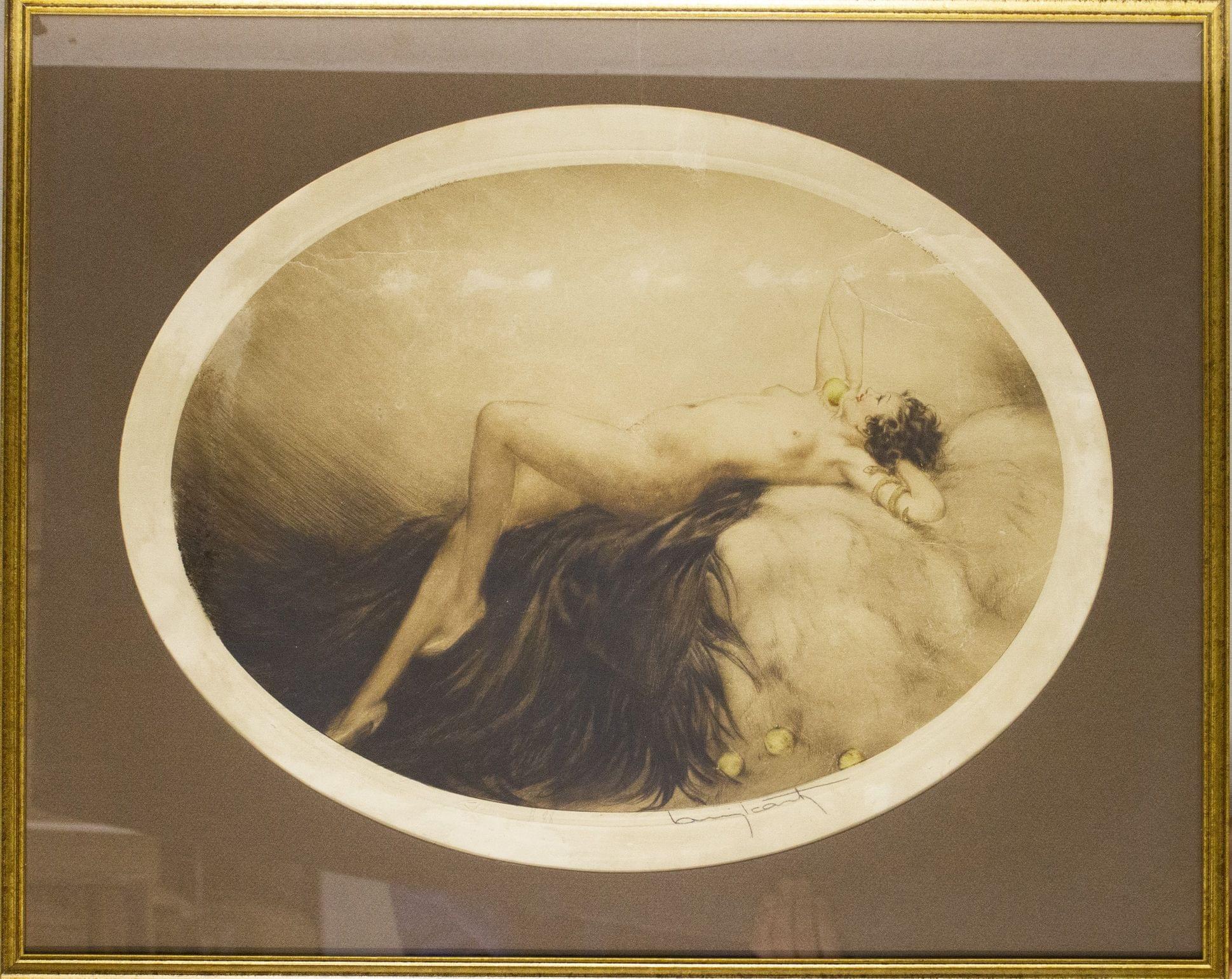 Nu féminin à la pomme, aquatinte, signée à la mine de plomb, 39x53 cm