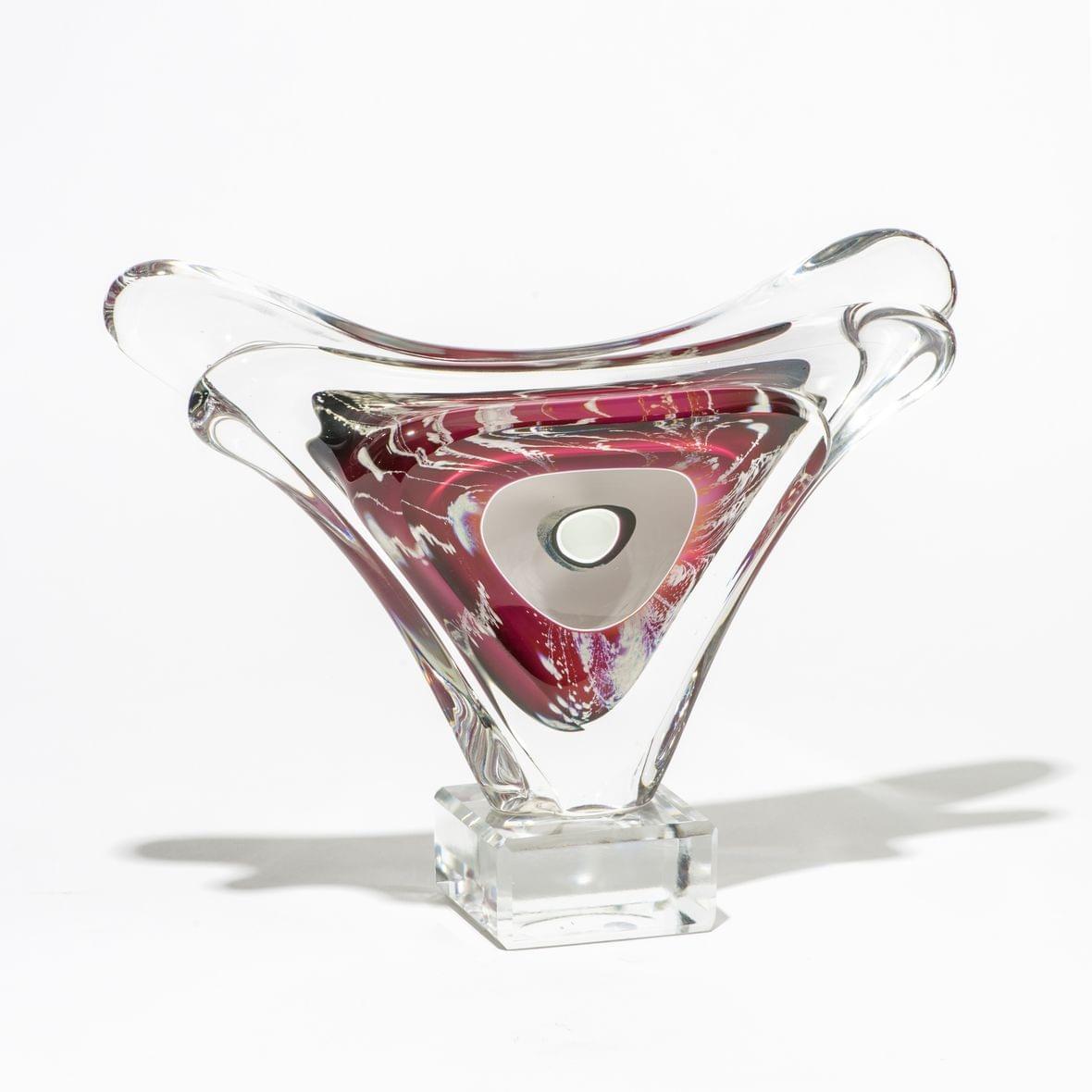Sculpture en verre polychrome, signée et datée 89, H 29 cm