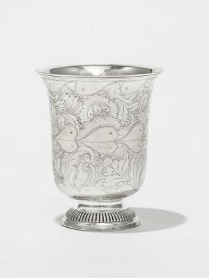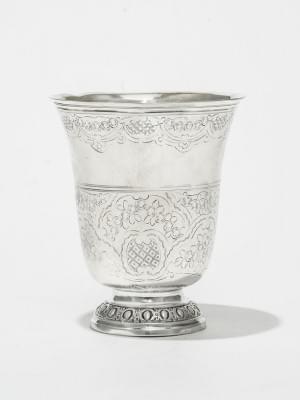 379. Timbale tulipe d'époque Louis XV à décor ciselé d'entrelacs et g...