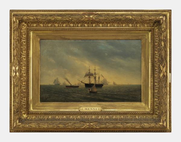 Marbre noir, bronze doré et cadran émaillé blanc signé Becker Pa...