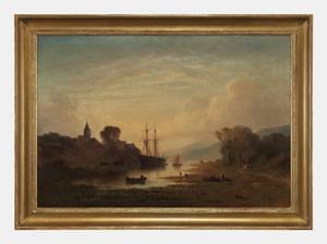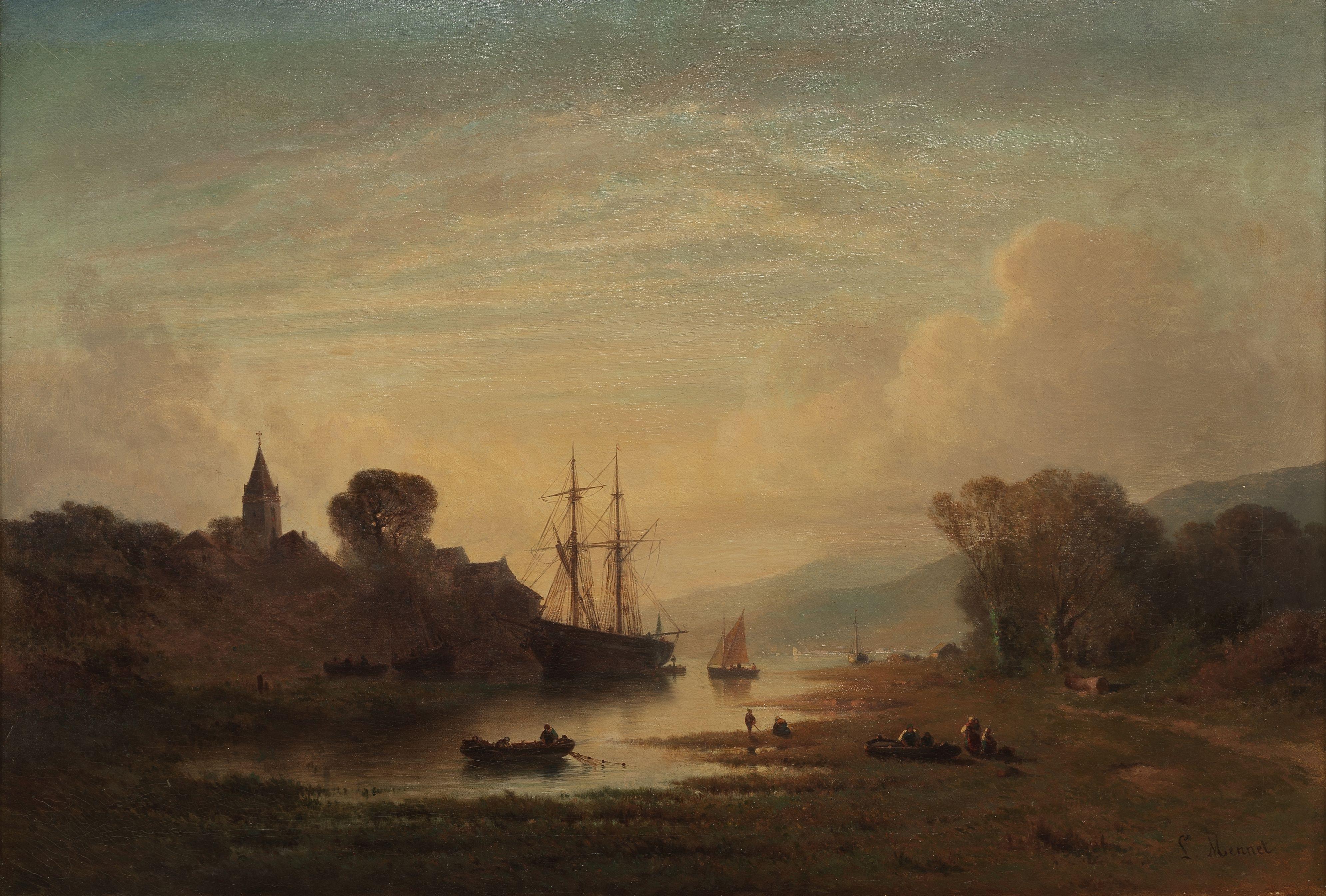 Paysage animé, huile sur toile marouflée, 56x81 cm