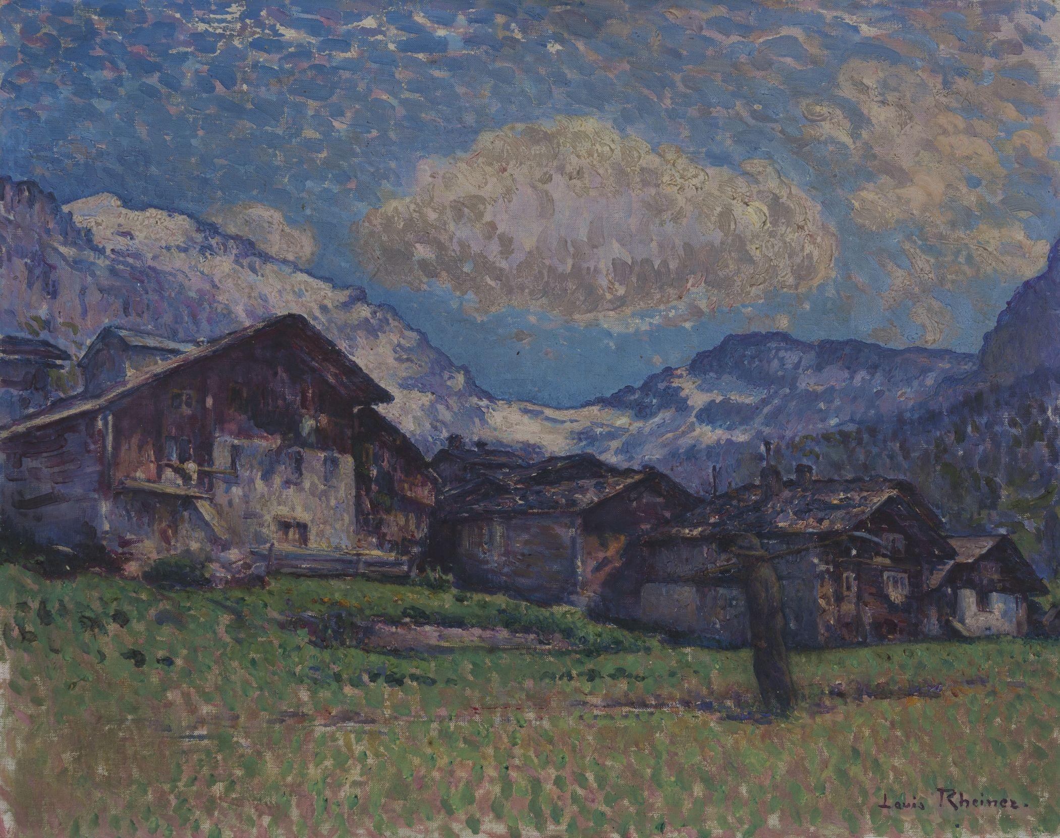 La Dala, Loèche, Valais, huile sur toile, signée, datée et située au verso août 1909, 43x55 cm