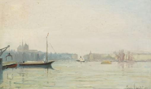 La rade de Genève, huile sur toile, signée et datée 1933, 32x51...