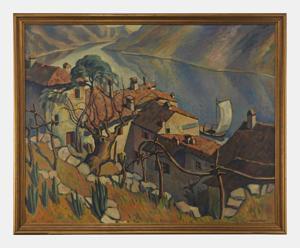 Vue de Gandria, huile sur toile, signée, 80x100 cm