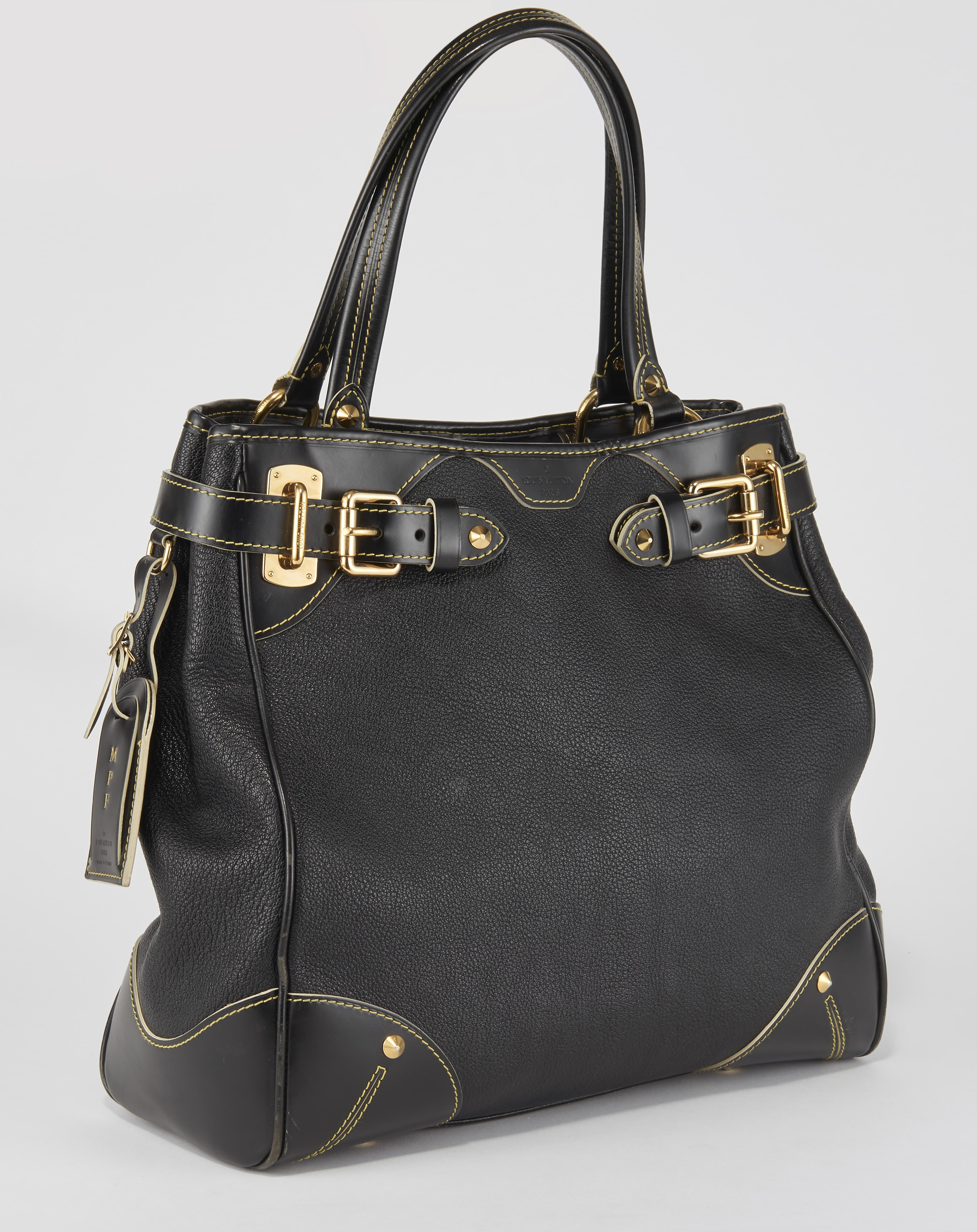 Double anse, cuir noir et garniture dorée, 30x34 cm