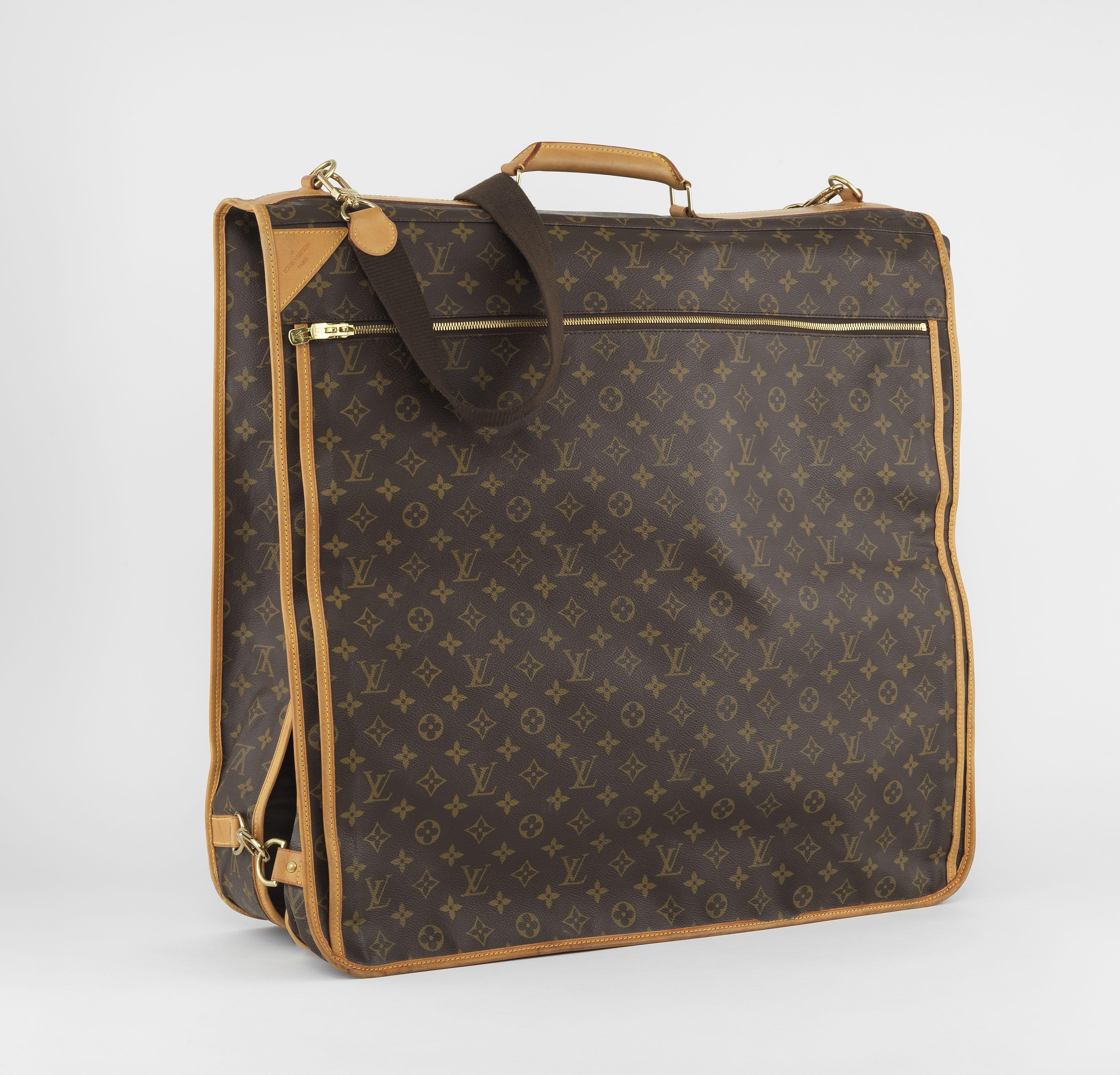 Toile Monogram, cuir naturel et bandoulière, garniture en métal doré, 57x60x10 cm