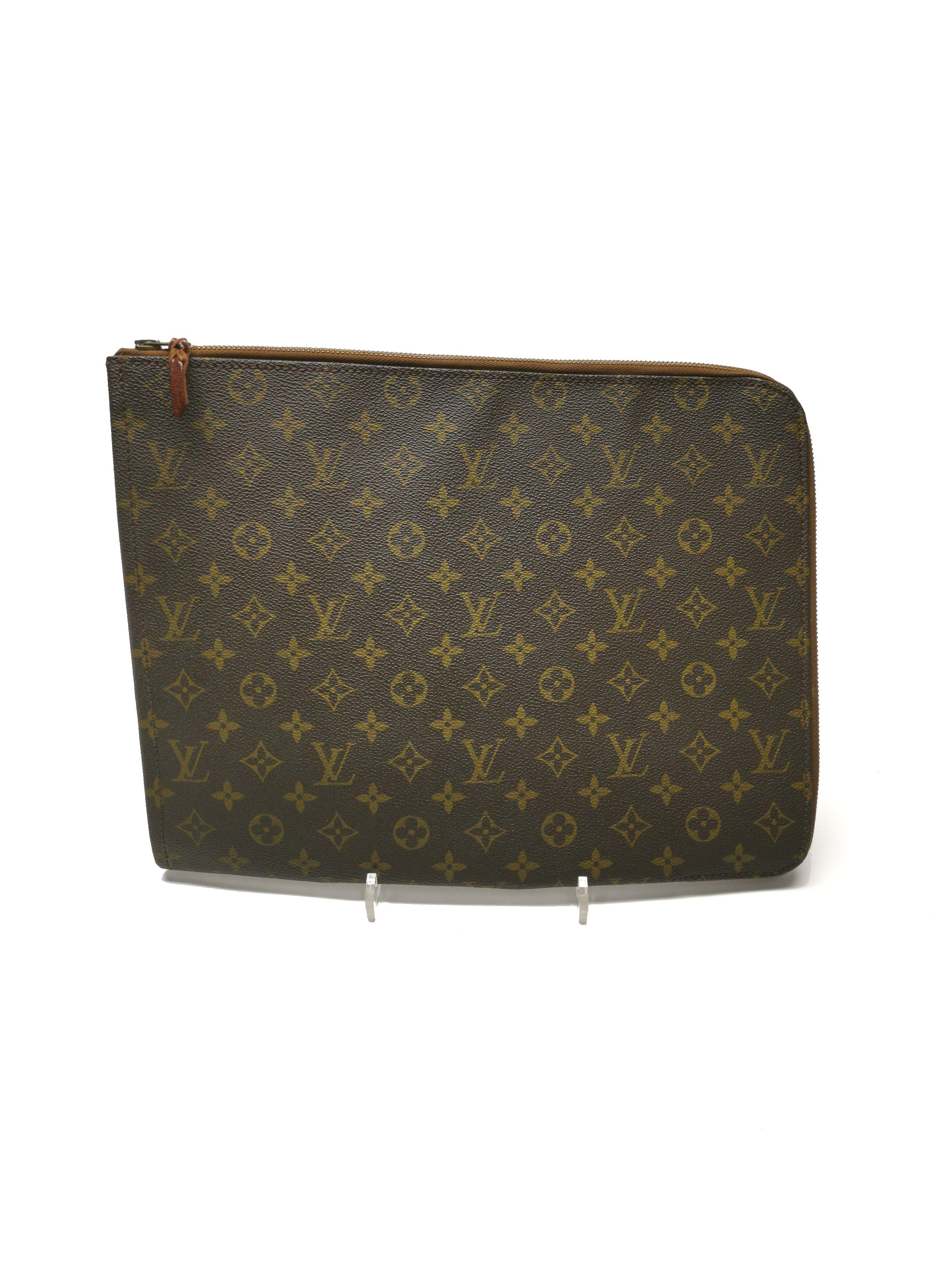 Toile enduite monogrammée, intérieur en cuir brun, 28x37 cm
