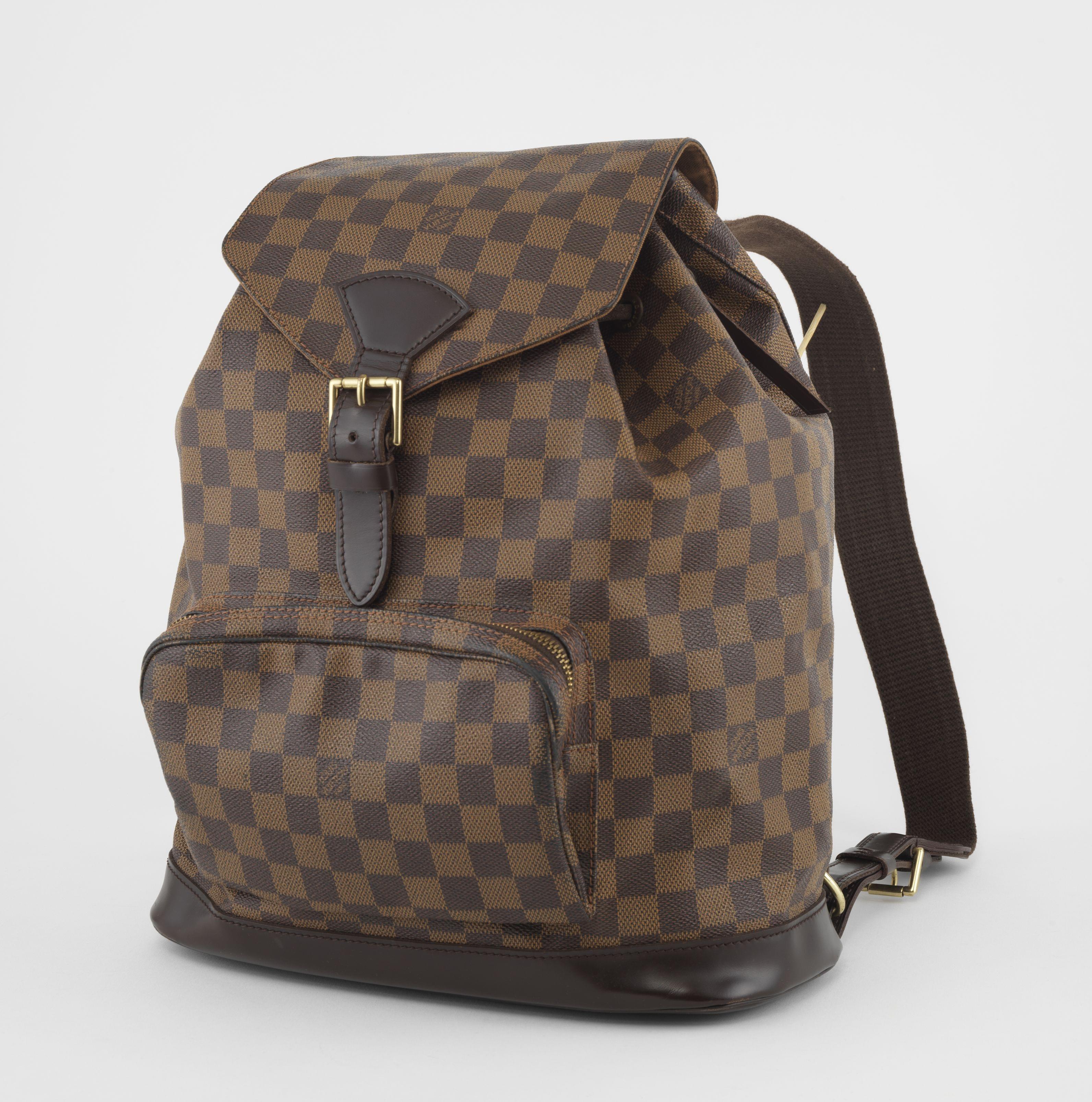L'un à décor d'une vieille malle en toile damier, logo LV en rou...
