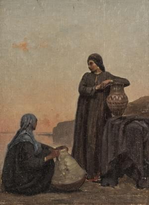 Les porteuses d'eau, huile sur toile marouflée sur carton, 36x27...