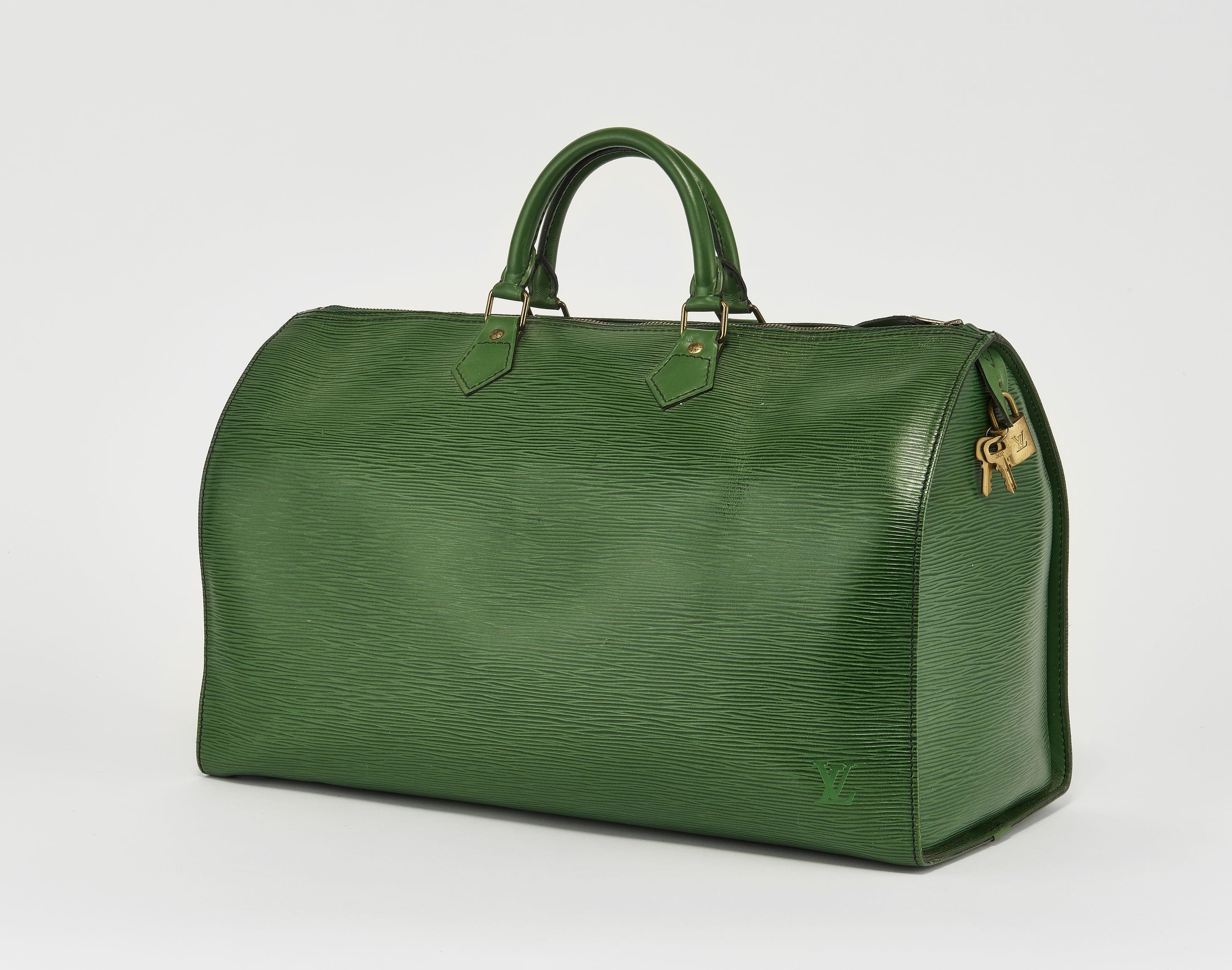 Cuir épi vert, fermeture Eclair, 25x42x20 cm
