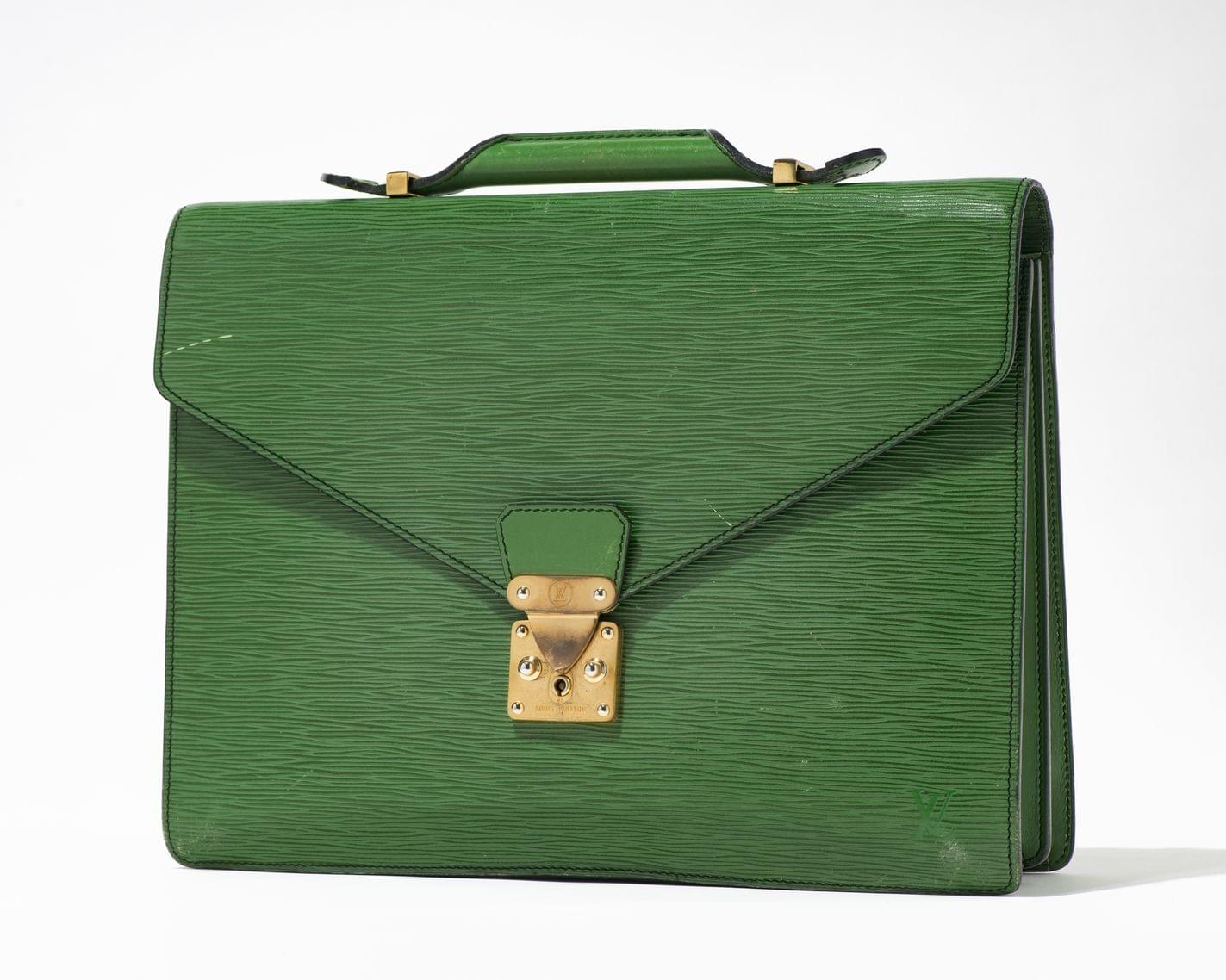 Toile enduite monogrammée et cuir, 53x80x28 cm