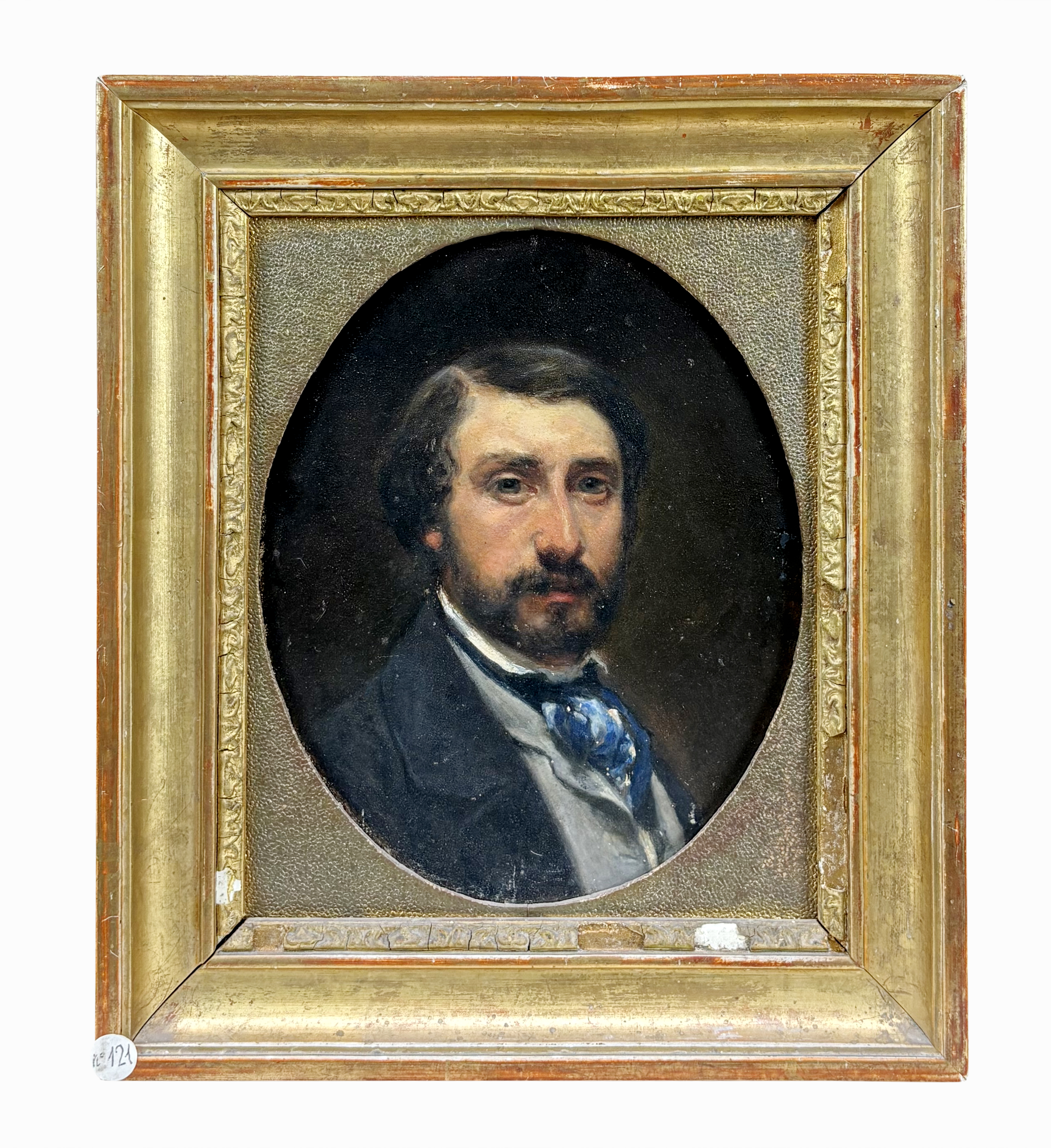 Portrait d'élégant, huile sur panneau, 17x14 cm
