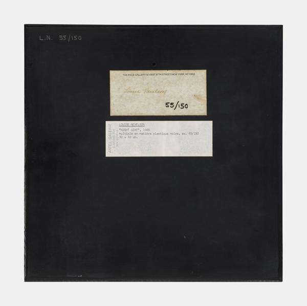 Night Leaf (1969), plexiglas noir, monogrammé et numéroté 55/150 au dos, contresigné et numéroté sur une étiquette, 32x32x5,5 cm. Provenance: Pace Gallery, NYC; Artel Galerie, Genève