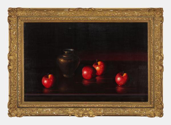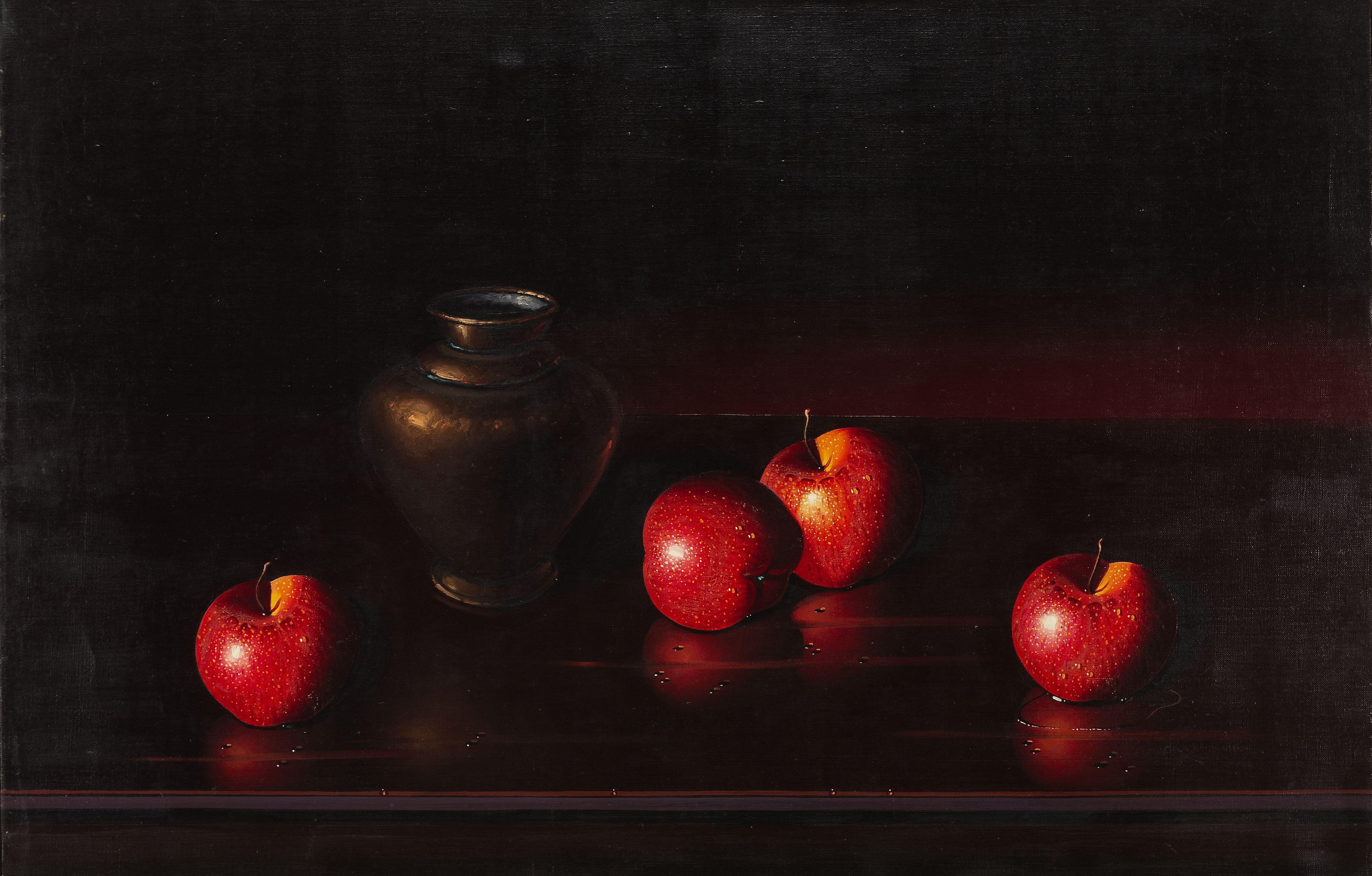 Nature morte aux pommes, huile sur toile, signée, 66x100 cm