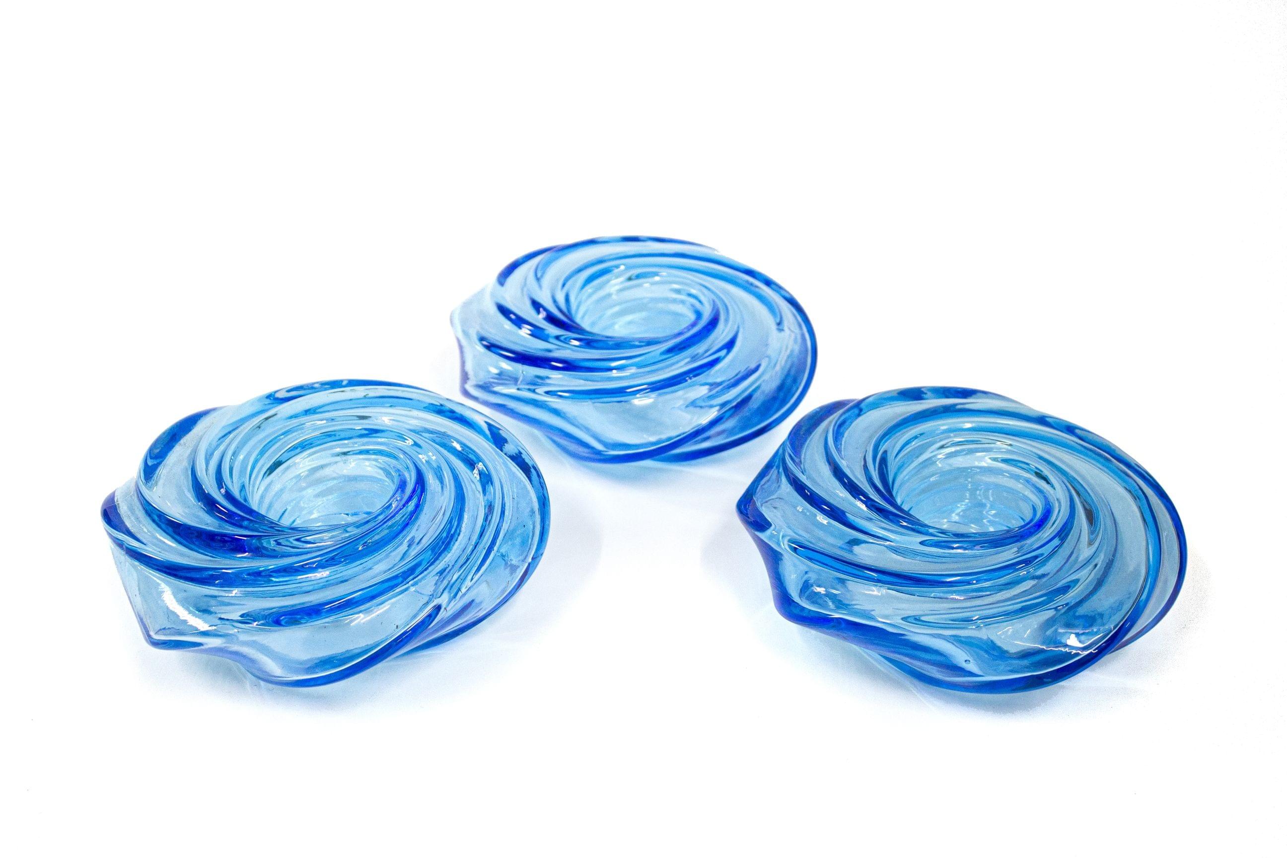 Ensemble de trois bougeoirs tourbillon, verre, atelier Schlaepfer , D 18 cm