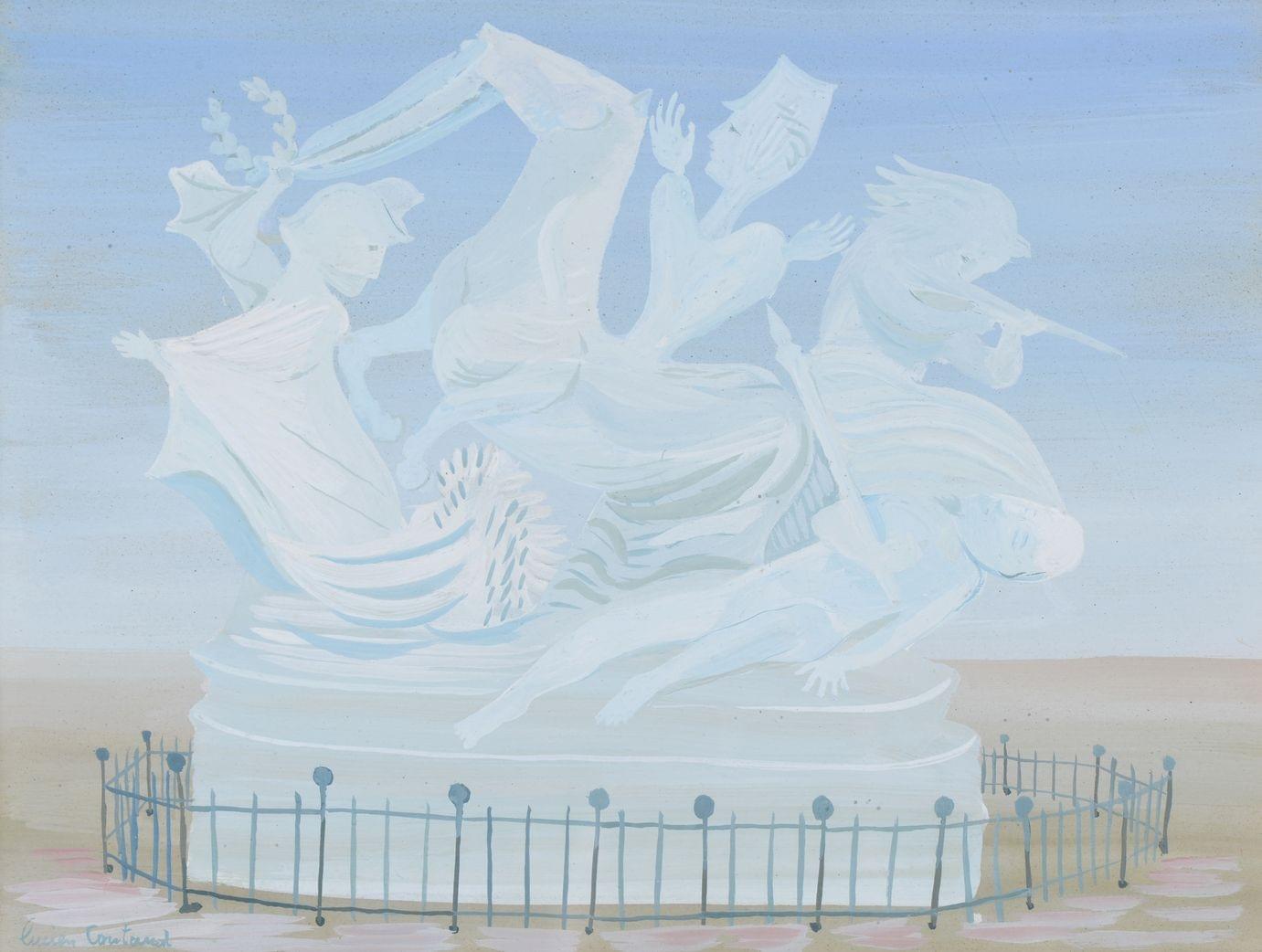 Monument imaginaire, gouache sur papier signée, 19x25 cm