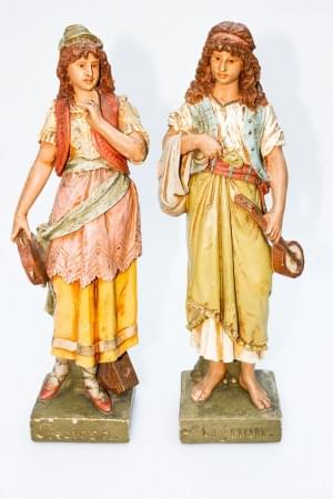 Paire de statuettes, plâtre peint, Allemagne ou Autriche circa 1...