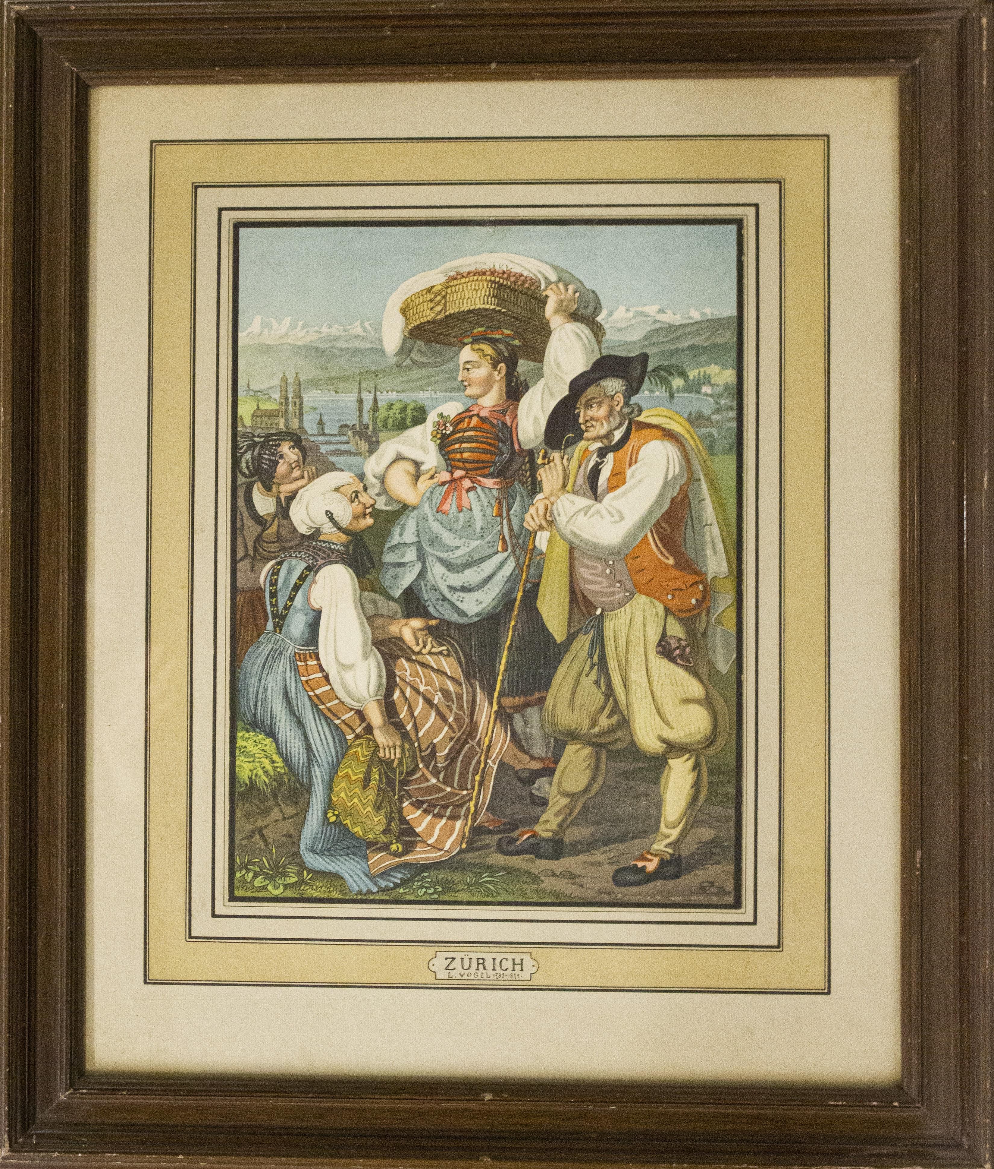 Costumes populaires de Zürich, estampe, 37x26 cm
