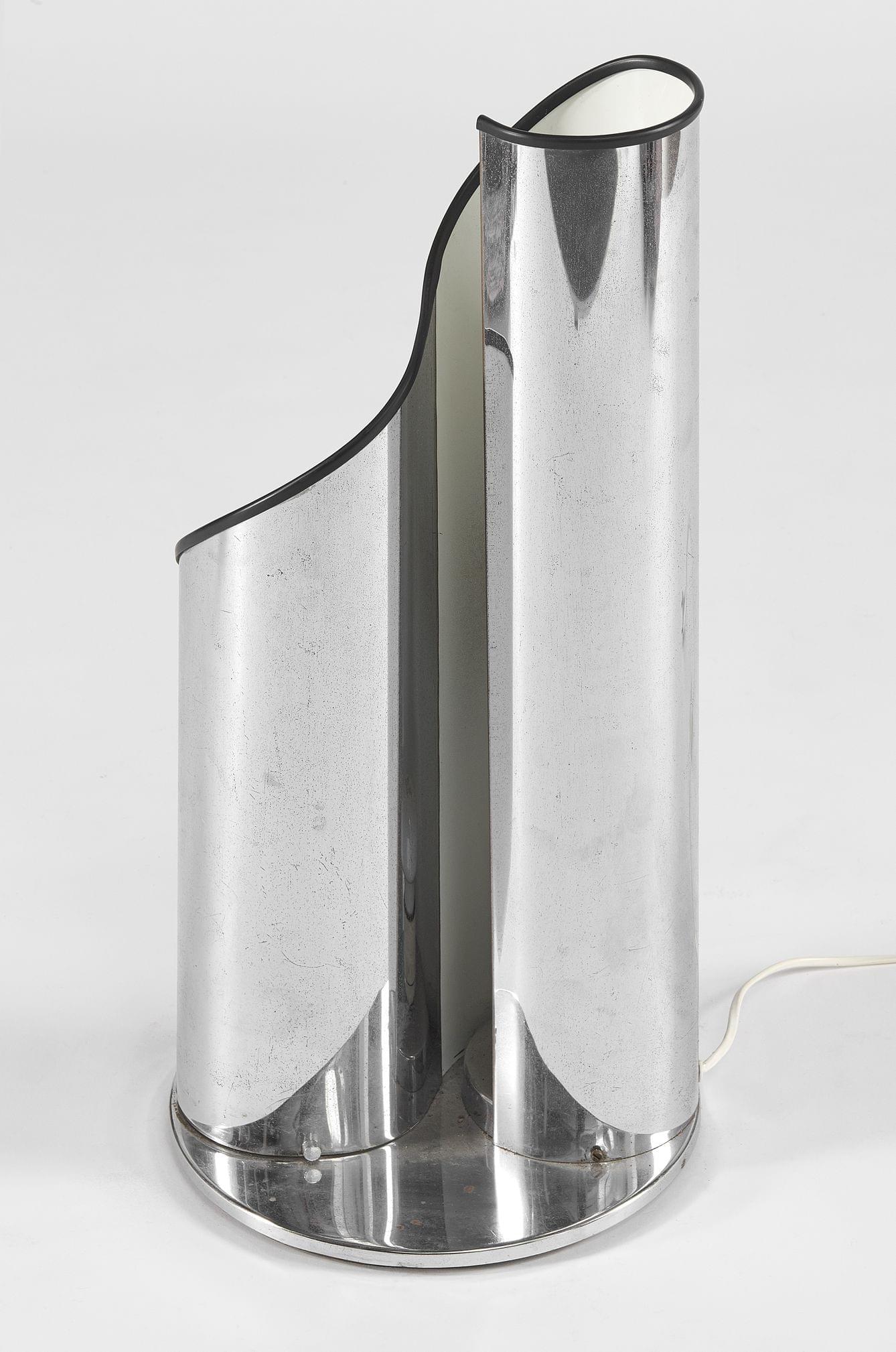 Composé d'une feuille de métal chromé en S sur base circulaire, H 60 cm