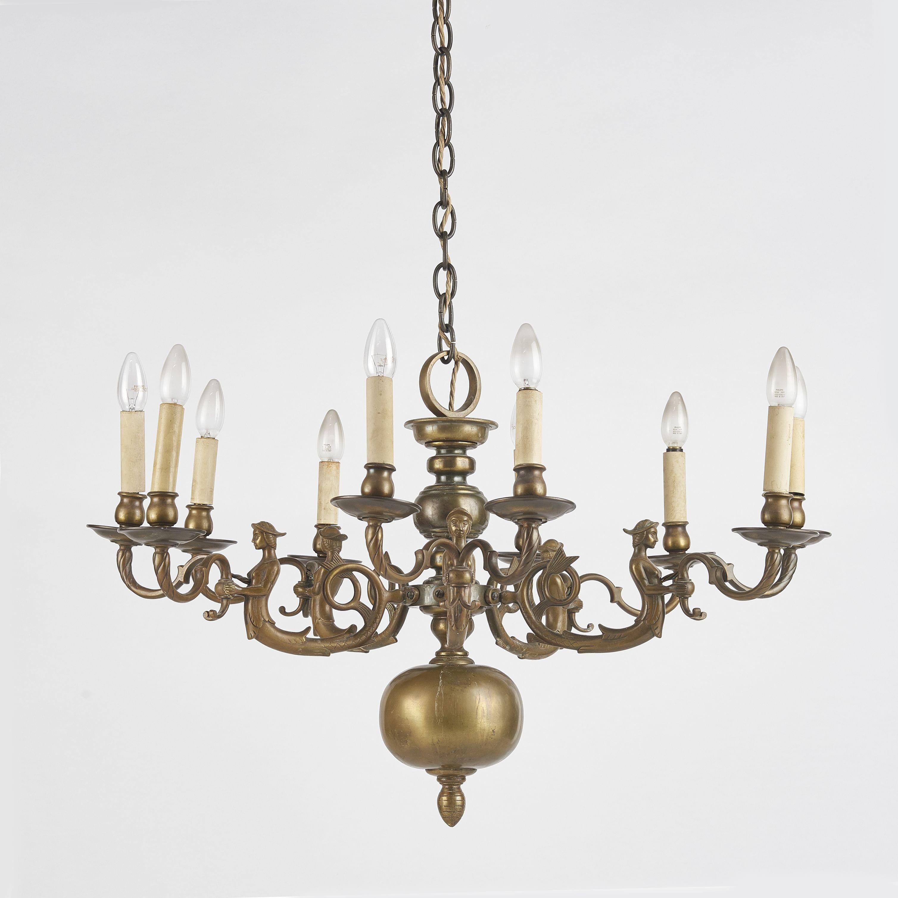 481. Lustre corbeille à douze lumières, pays scandinaves, XIXe s