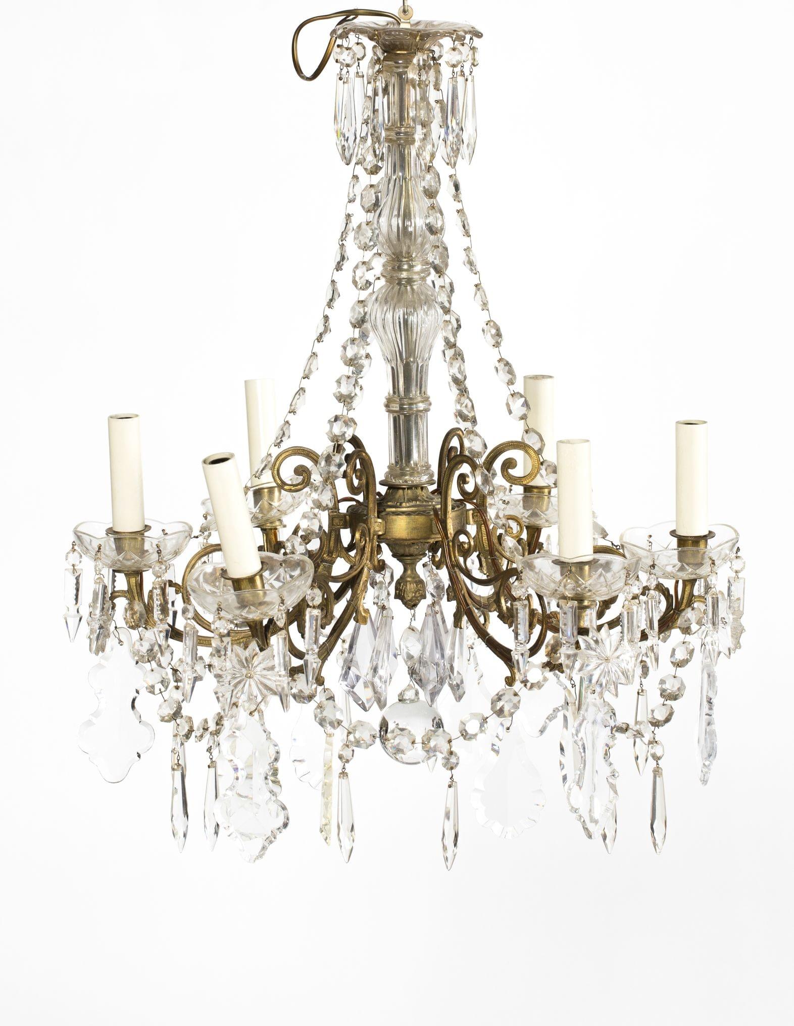 Pampilles de verre teinté mauve et bronze, H 85 cm