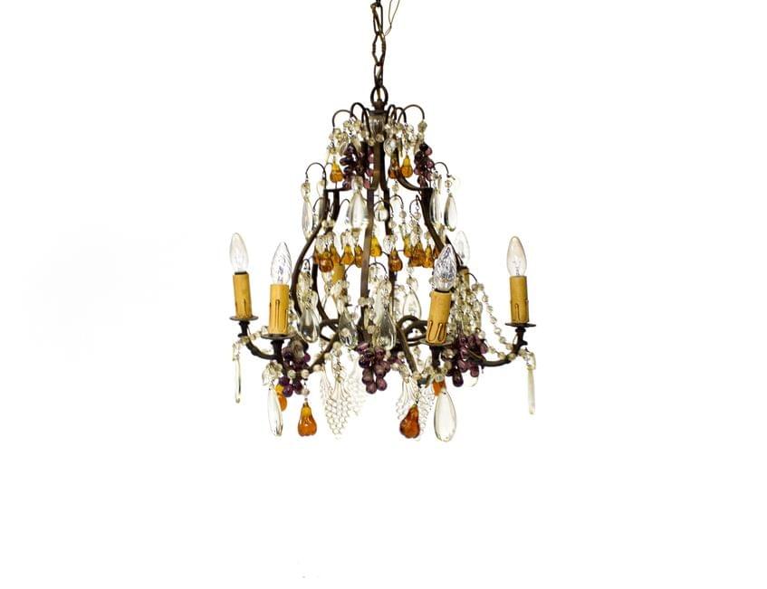 Pampilles de verre et palmettes, bronze doré, H 70 cm