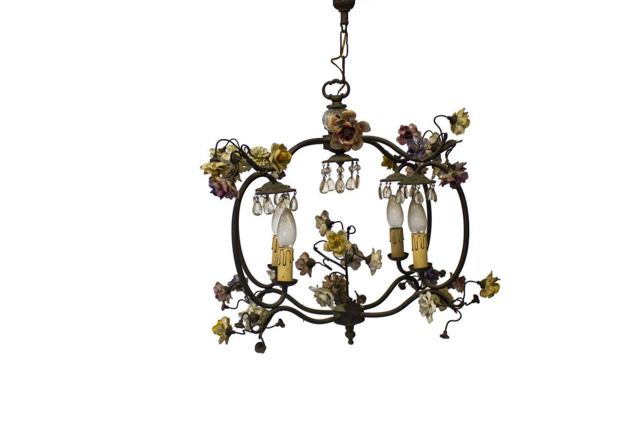 Pampilles de verre et palmettes, bronze doré, H 70 cm