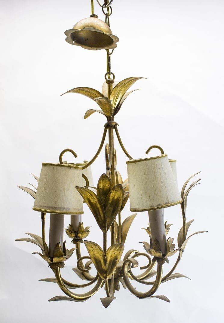 Quatre lumières alternées de rameaux, métal doré, H 70 cm