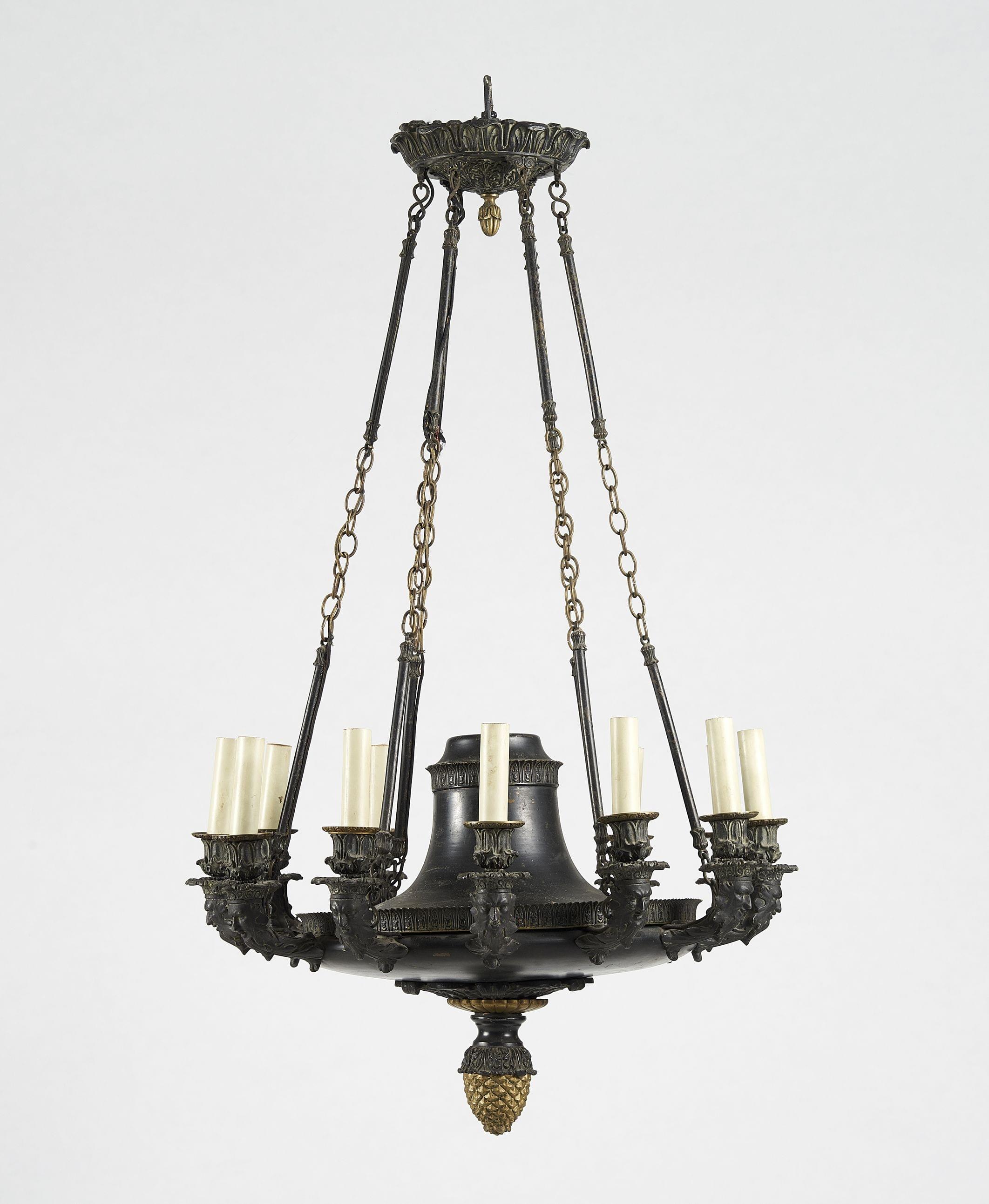 Bras de lumières à décor de tête de satyre, bronze à patine foncée