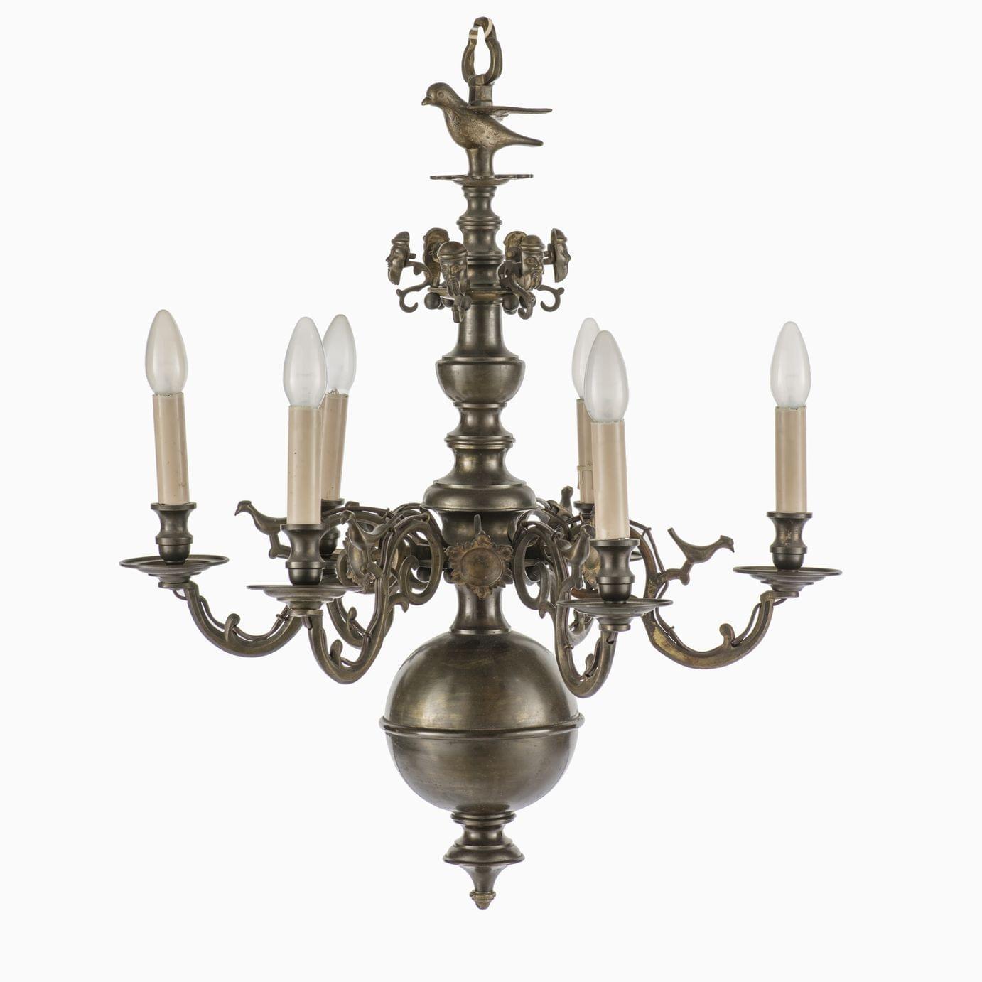 Fût balustre à décor d'oiseaux et fleurs, bronze, XIXe s, H 72, D 56 cm