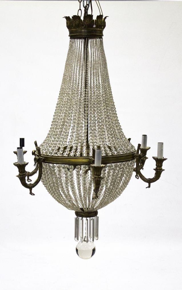 Sept lumières, bronze doré et pampilles facettées, H 104 cm