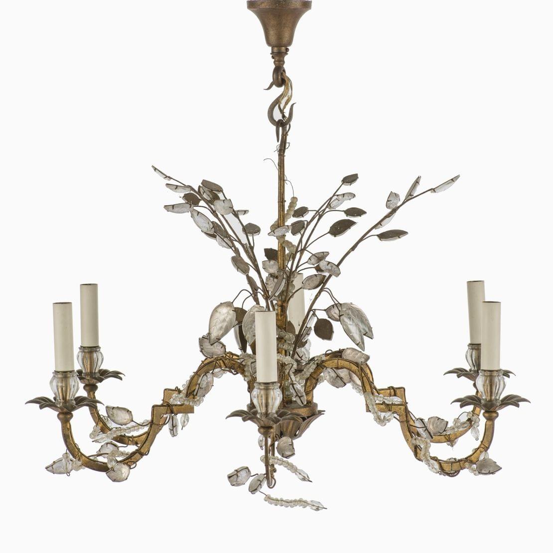 A six lumières, cristal taillé et métal doré à décor de pampilles, H 75 cm
