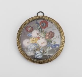 Bouquet de fleurs dans une corbeille, miniature ronde à la gouac...