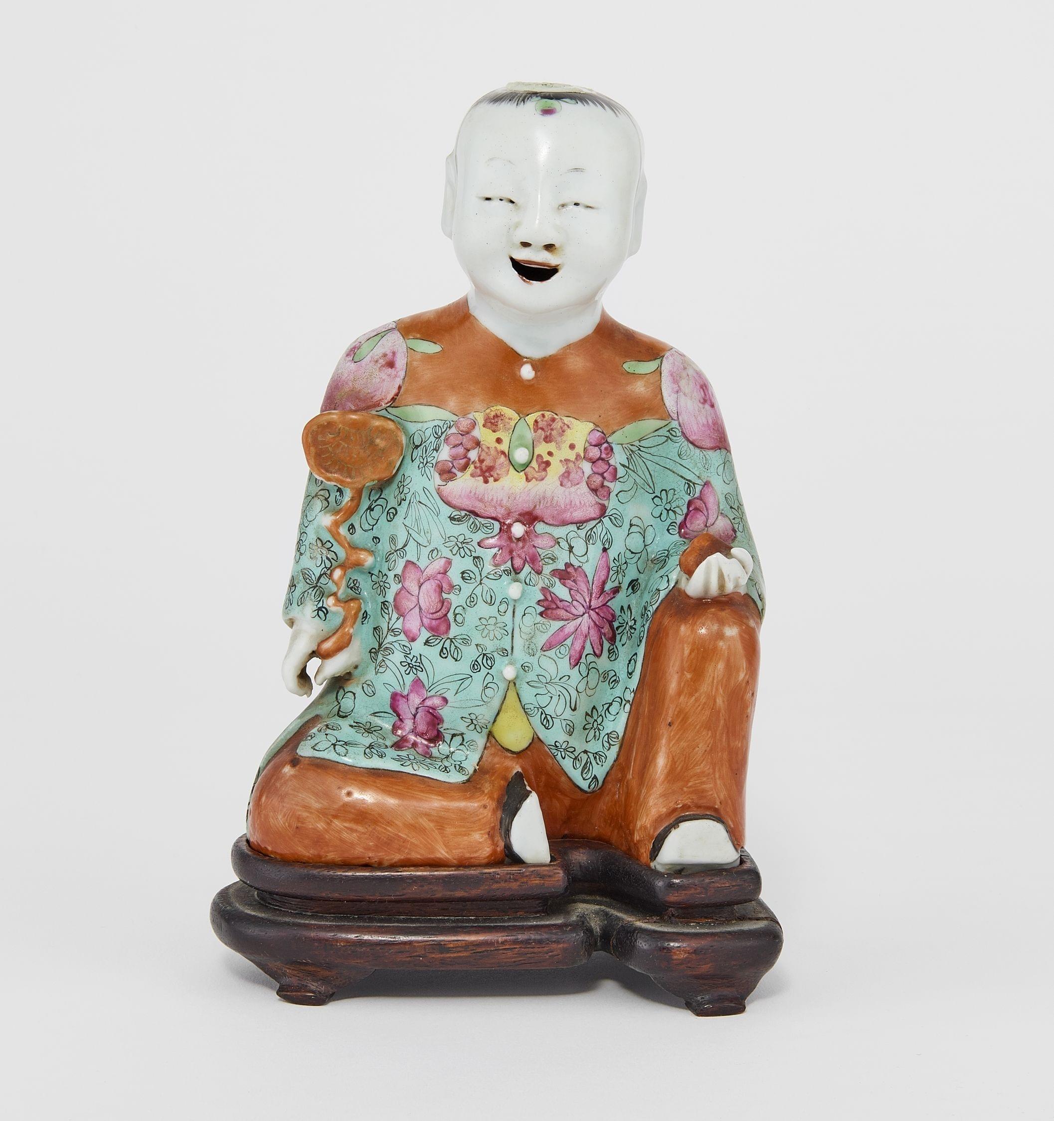 Porcelaine émaillée bleu blanc à décor de vases et scènes animée...