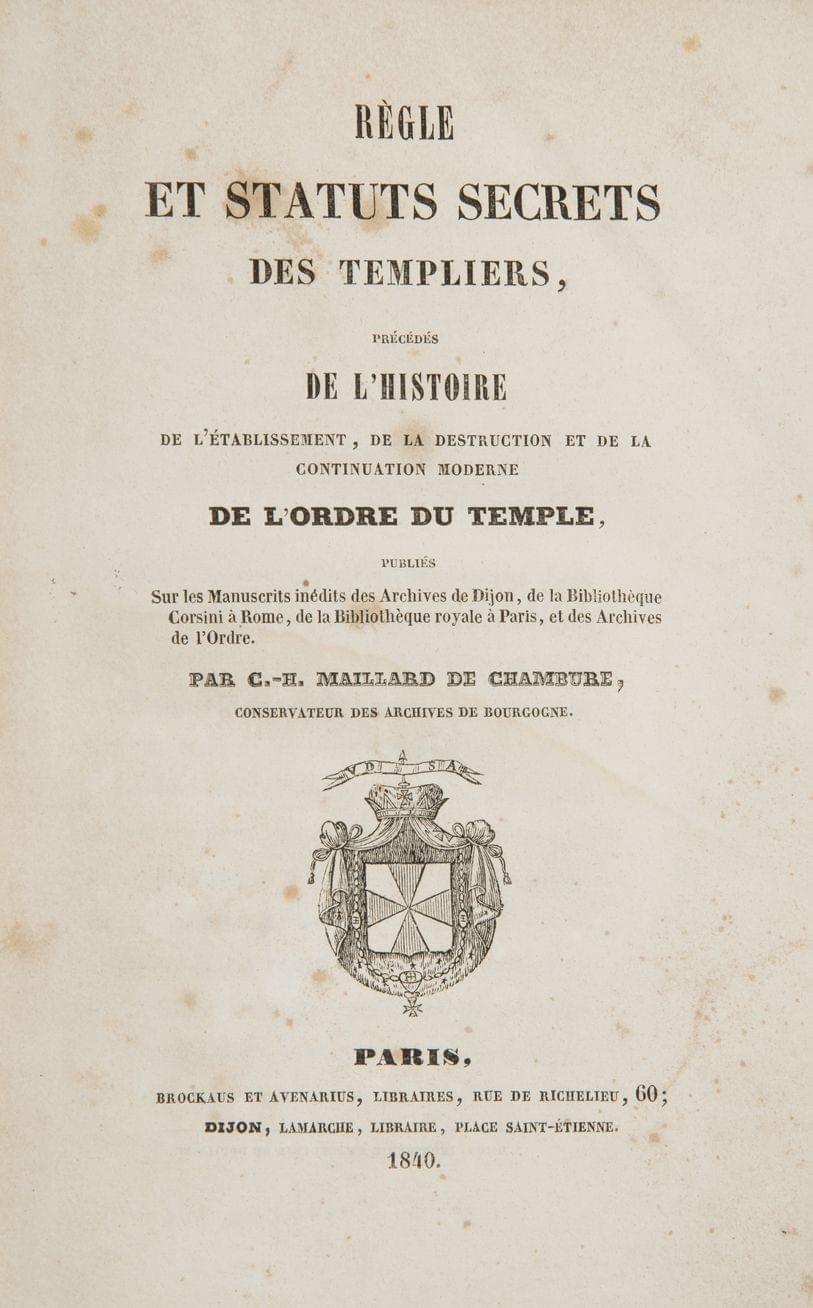 175. MAILLARD de CHAMBURE: Règle et Statuts secrets des Templiers. Paris et Dijon, 1840;