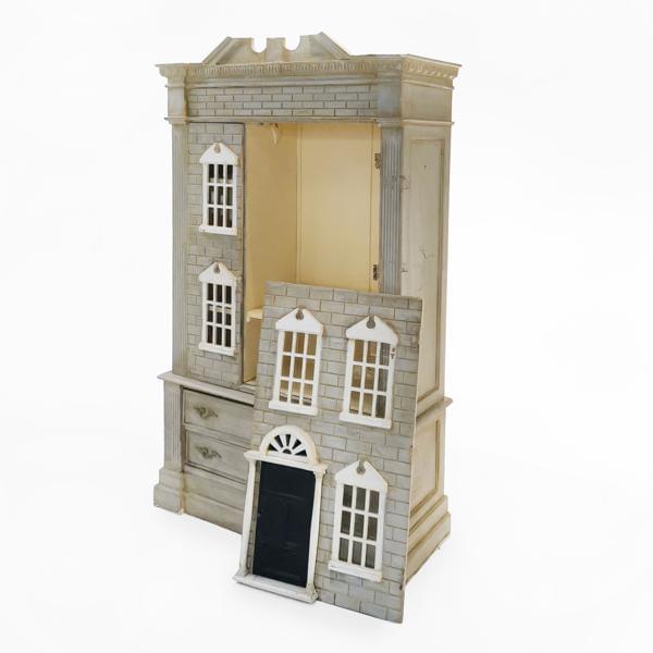Laiton, métal laqué marbré bleu, signée, H 64 cm