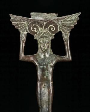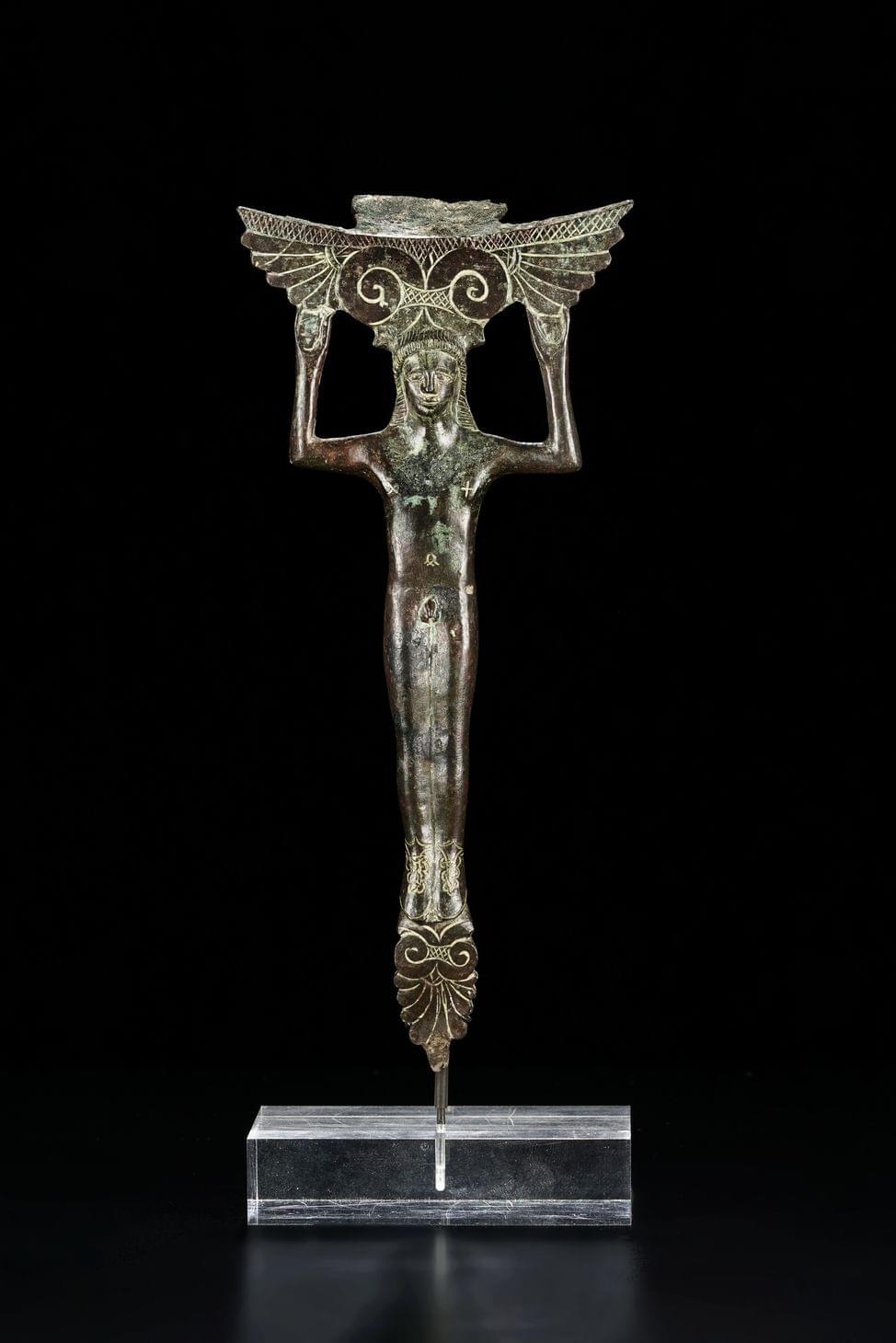 926. Manche de miroir figurant Iah, Egypte, XXVIe-XXXe dynastie