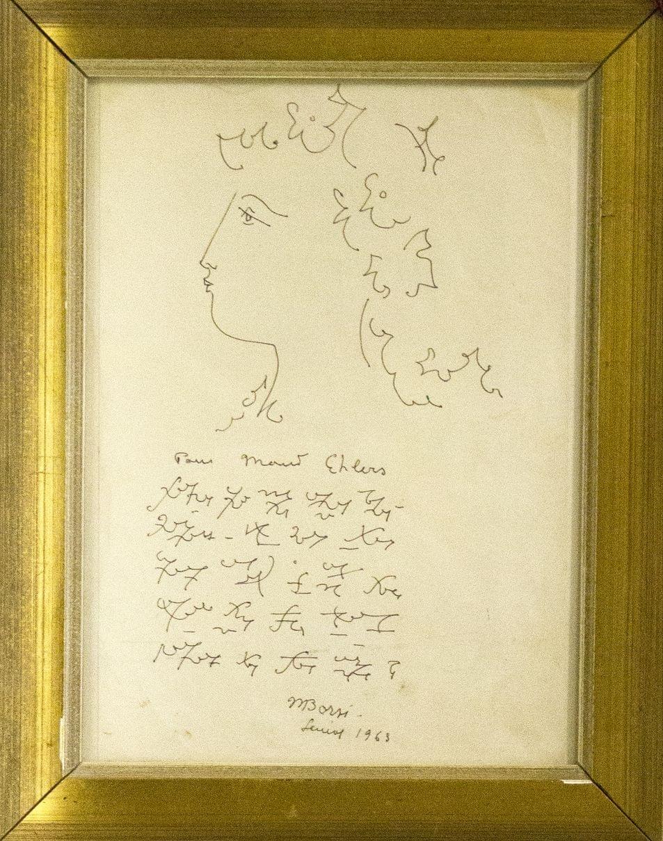 Profile, stylo sur papier, dédicacé, signé et daté 1963, 23x16 cm