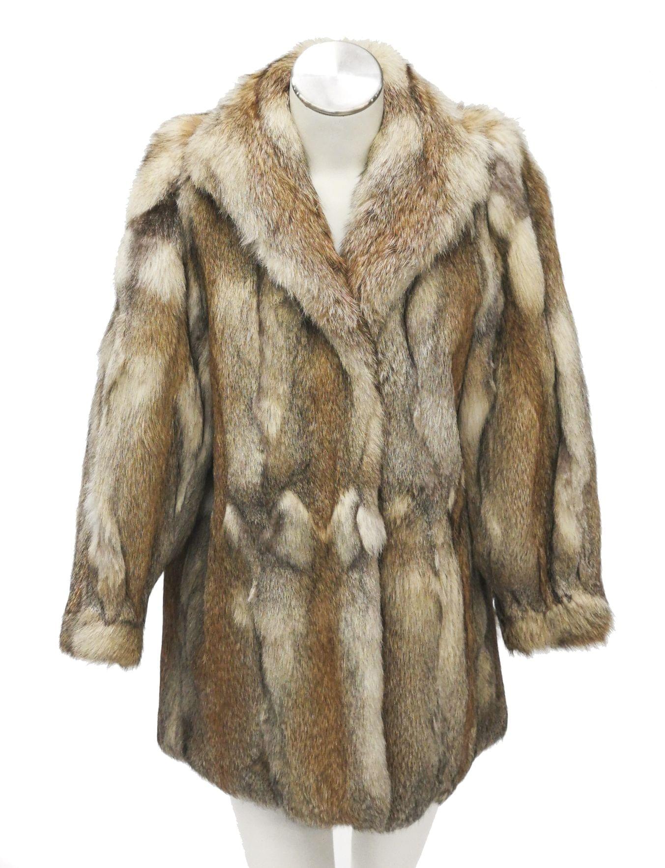 Fourrure de renard et bandes de cuir brun, manches trois quarts,...