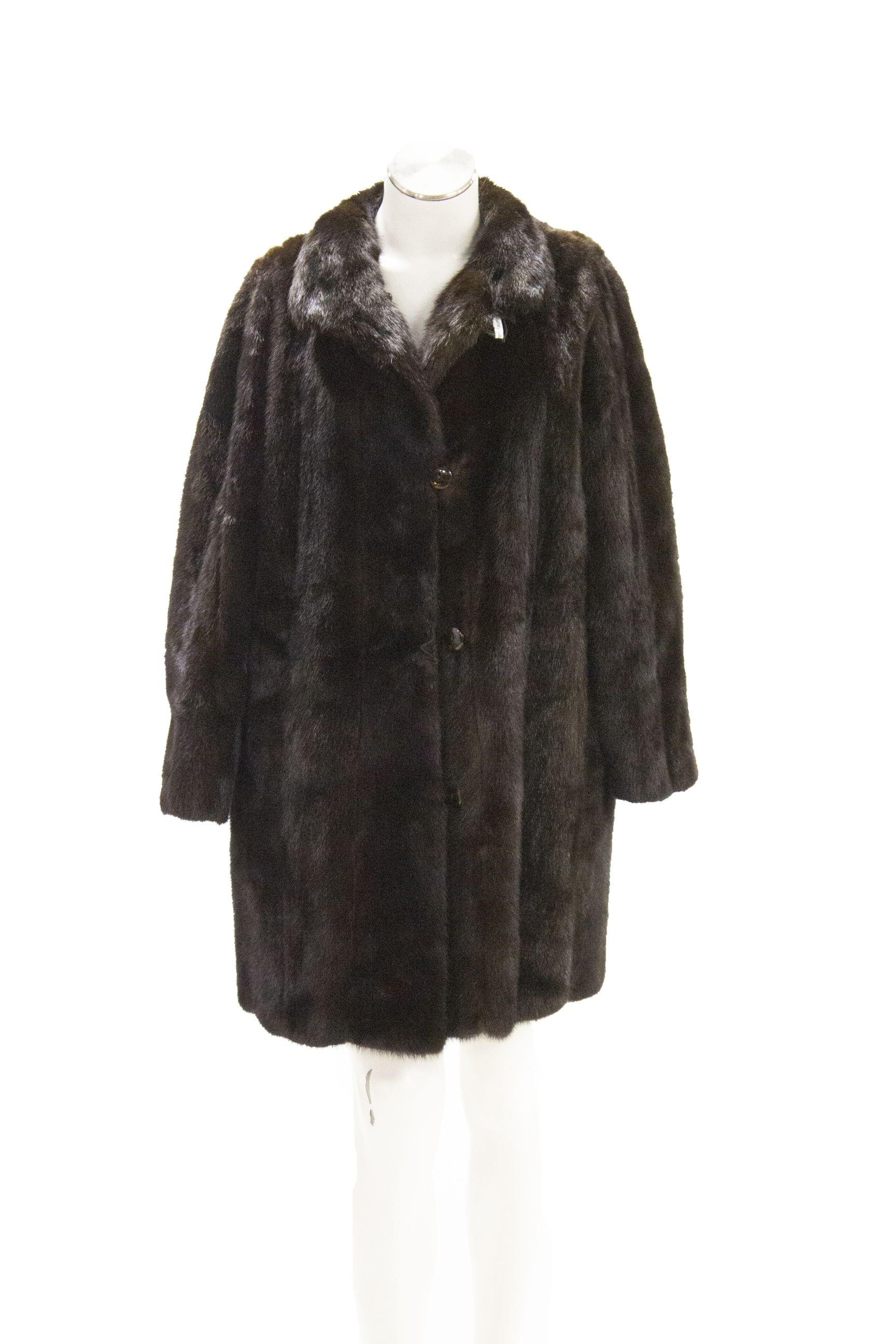 Vison brun, intérieur en tissu brun, fermeture à boutons, poches latérales