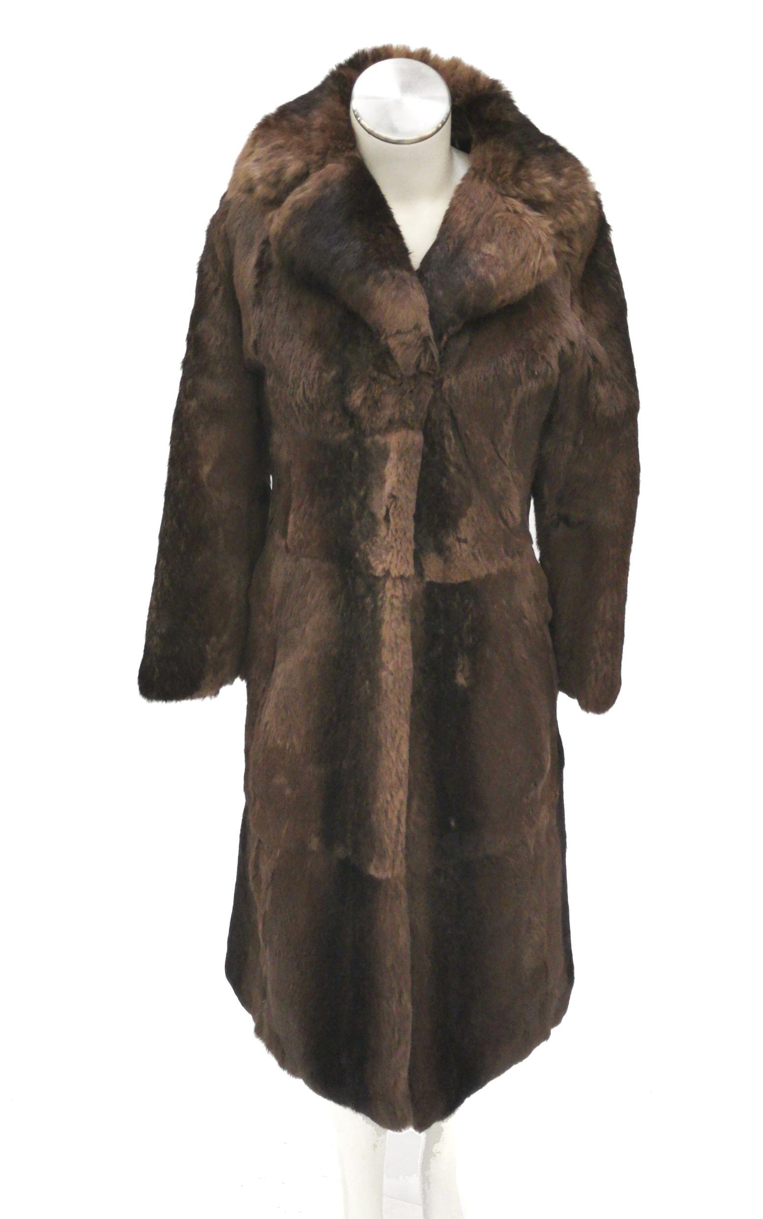 Fourrure rasée, probablement vison, poches latérales, fermeture à crochets