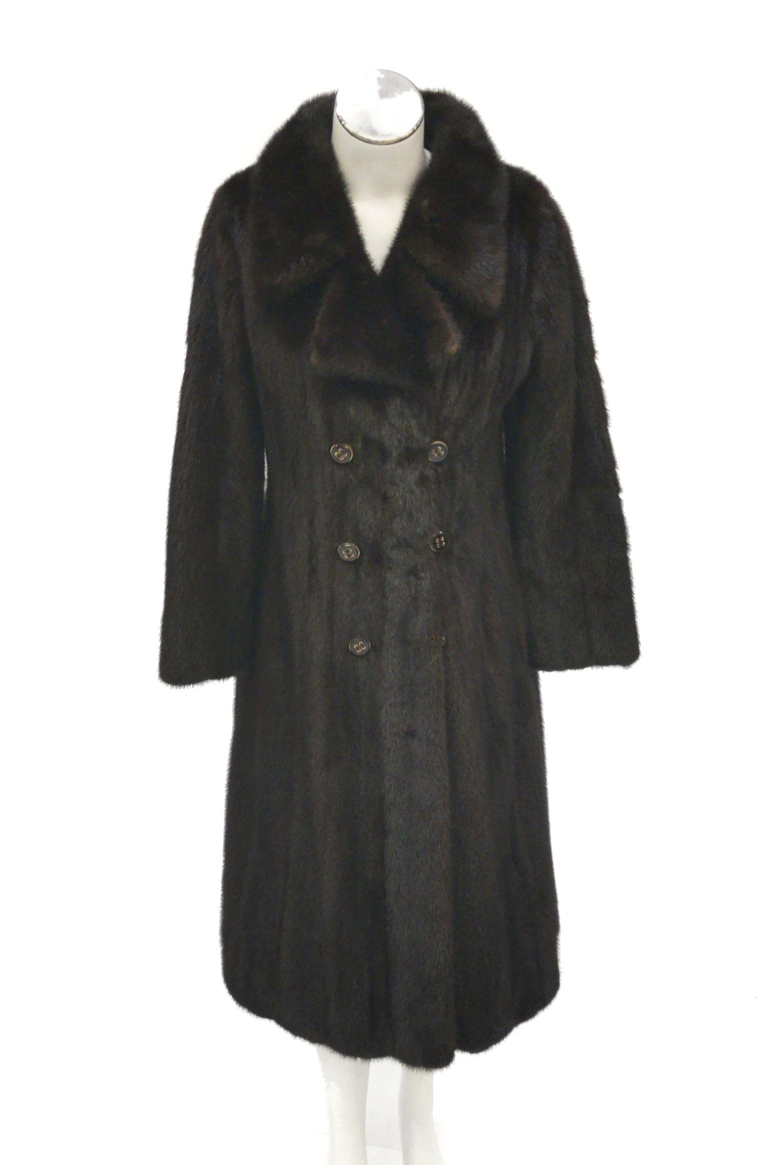 Vison brun, poches latérales, fermeture à boutons