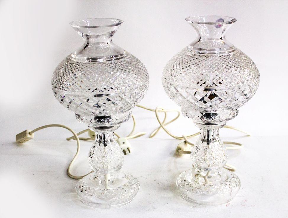 Paire de lampes, cristal taillé en pointes de diamant, H 36 cm