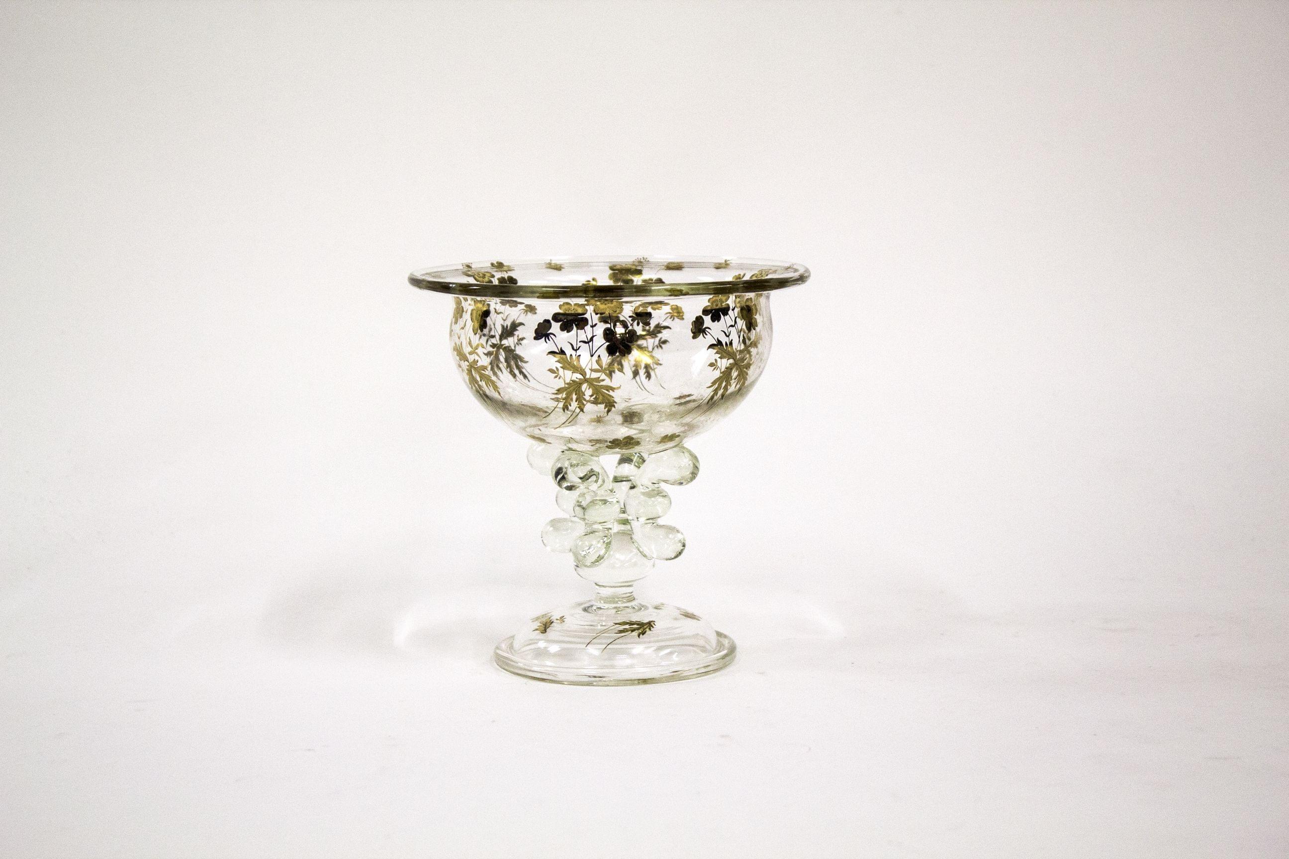 Coupe en verre à décor de fleurs dorées, H 13 cm