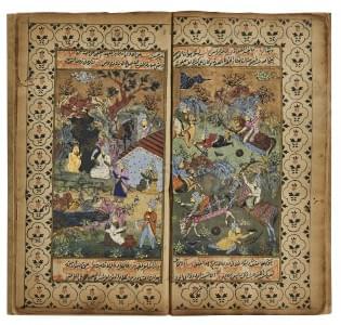 Enrichie de dix miniatures figurant des scènes de chasse et scèn...