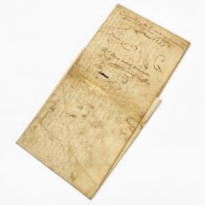 Commission de l’Intendance des Finances près Monseigneur, rédigé à Blois et daté le 1er avril 1577, portant la signature autographe du roi Henri III, dans lequel il est donné mandat d’agir dans les perceptions des impôts avec mandat royal. H. : 39,5cm ; L. : 58 cm.