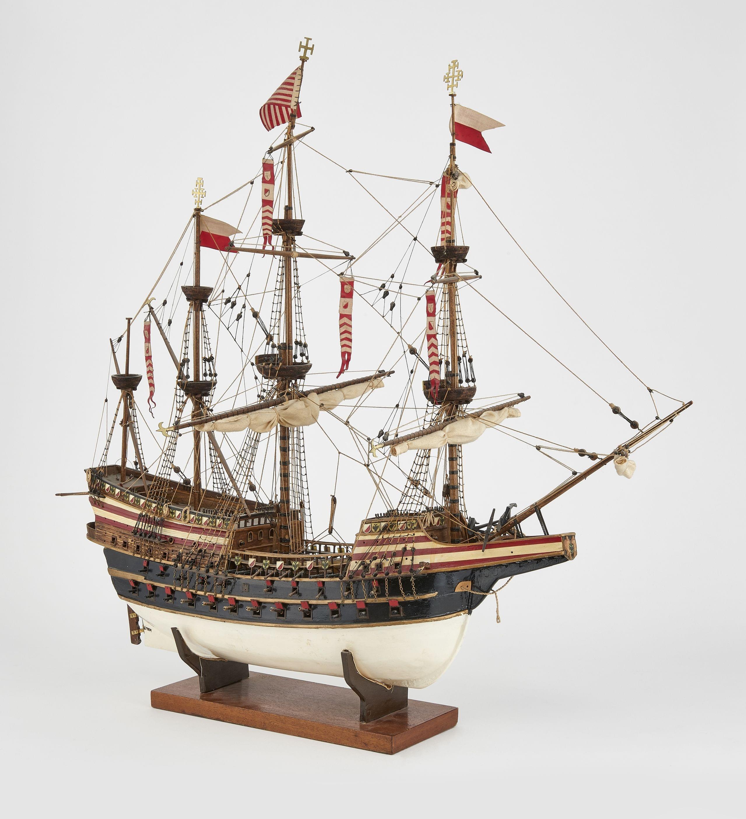 Bois au naturel et bois peint, tissu, L 75 cm.