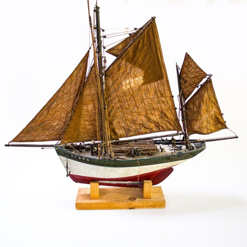 Bois peint, tissu, cordage, XIXe s, L 67 cm