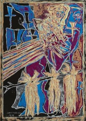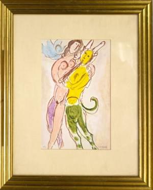 La Pêche et Par élégance, deux linogravures sur papier, signées...